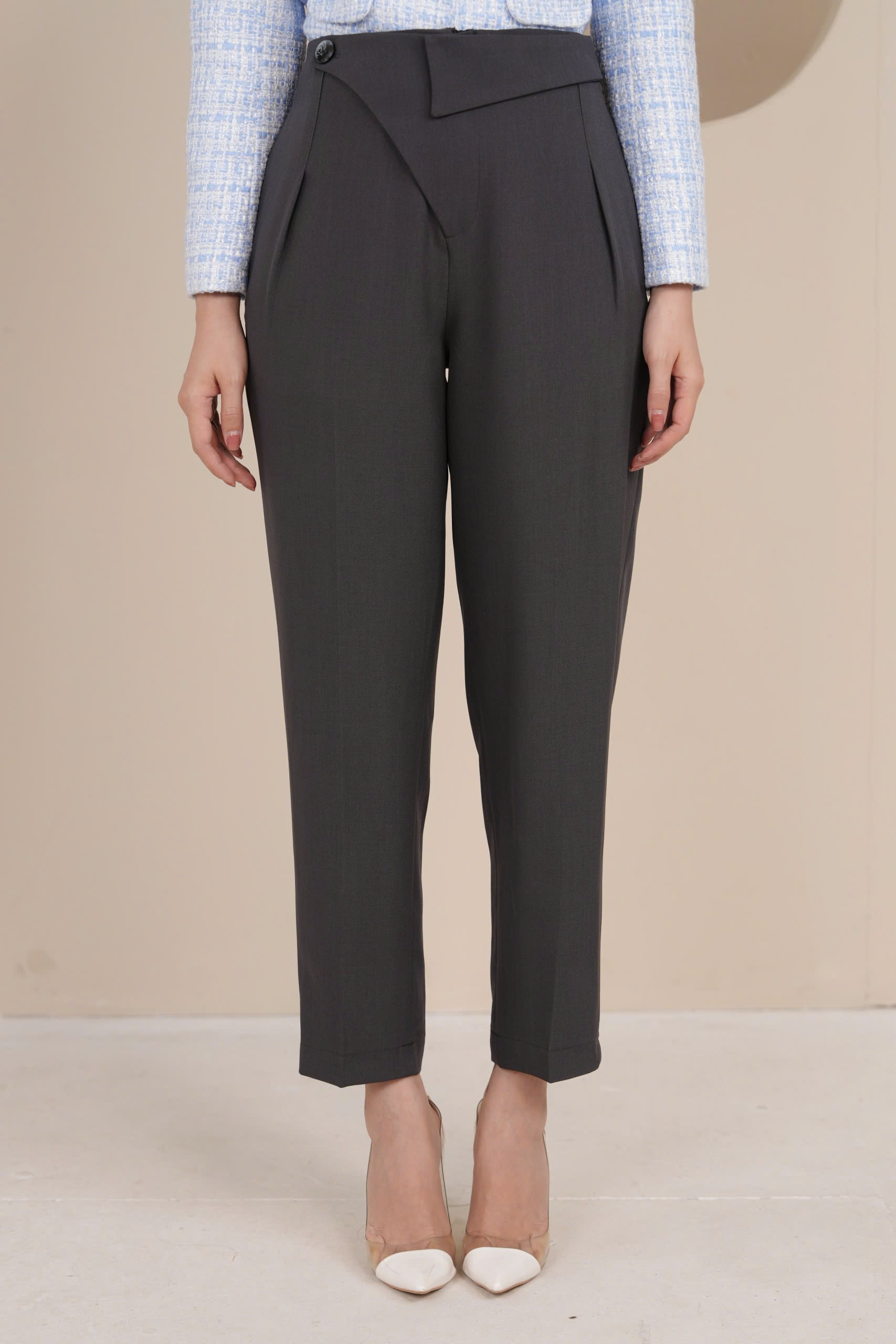 21996B05 - Quần suông cạp cao cách điệu-trượt hàn