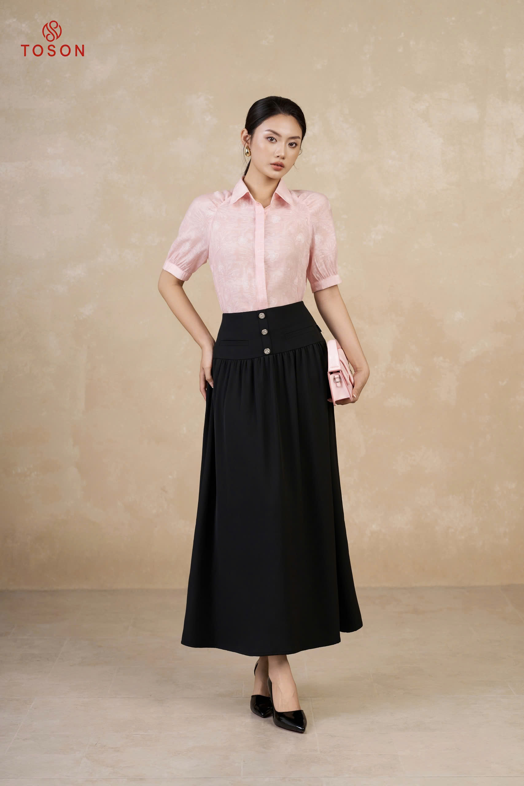 33035B65 - Chân váy xòe carolan cạp đính cúc