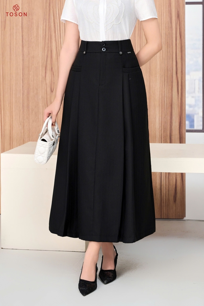 33066D66 - Chân váy xòe đũi đen bổ túi xếp ly