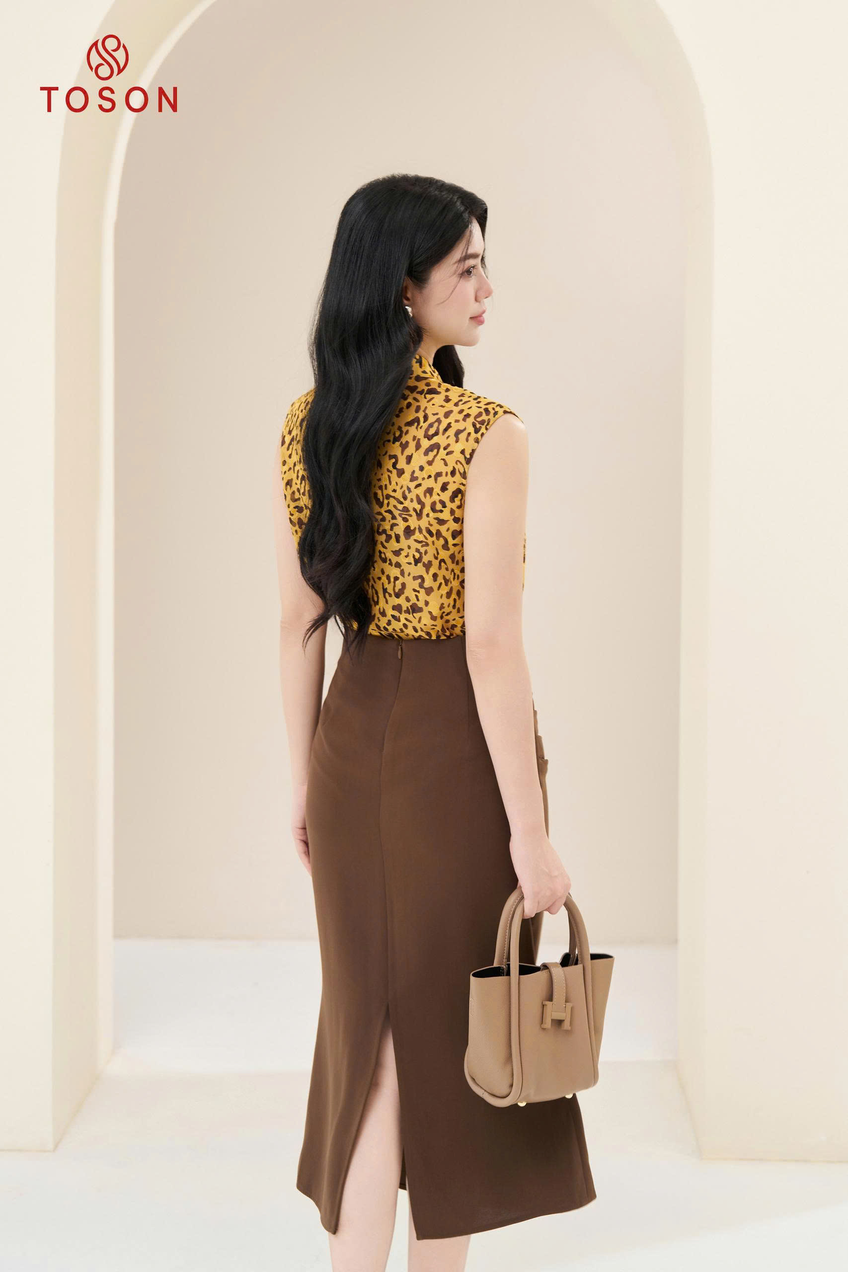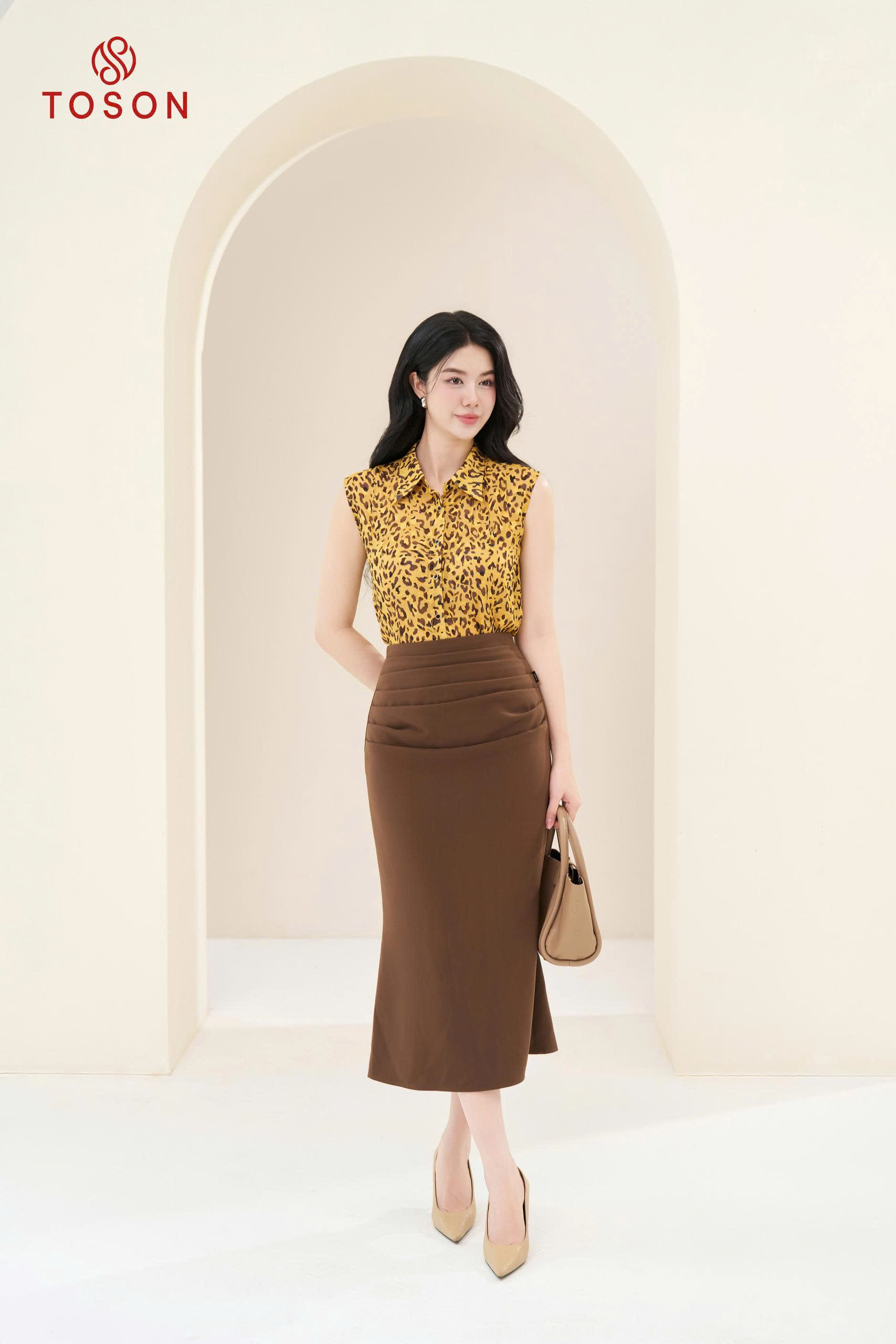 34026N95 - Chân váy nâu đuôi cá xếp ly bụng