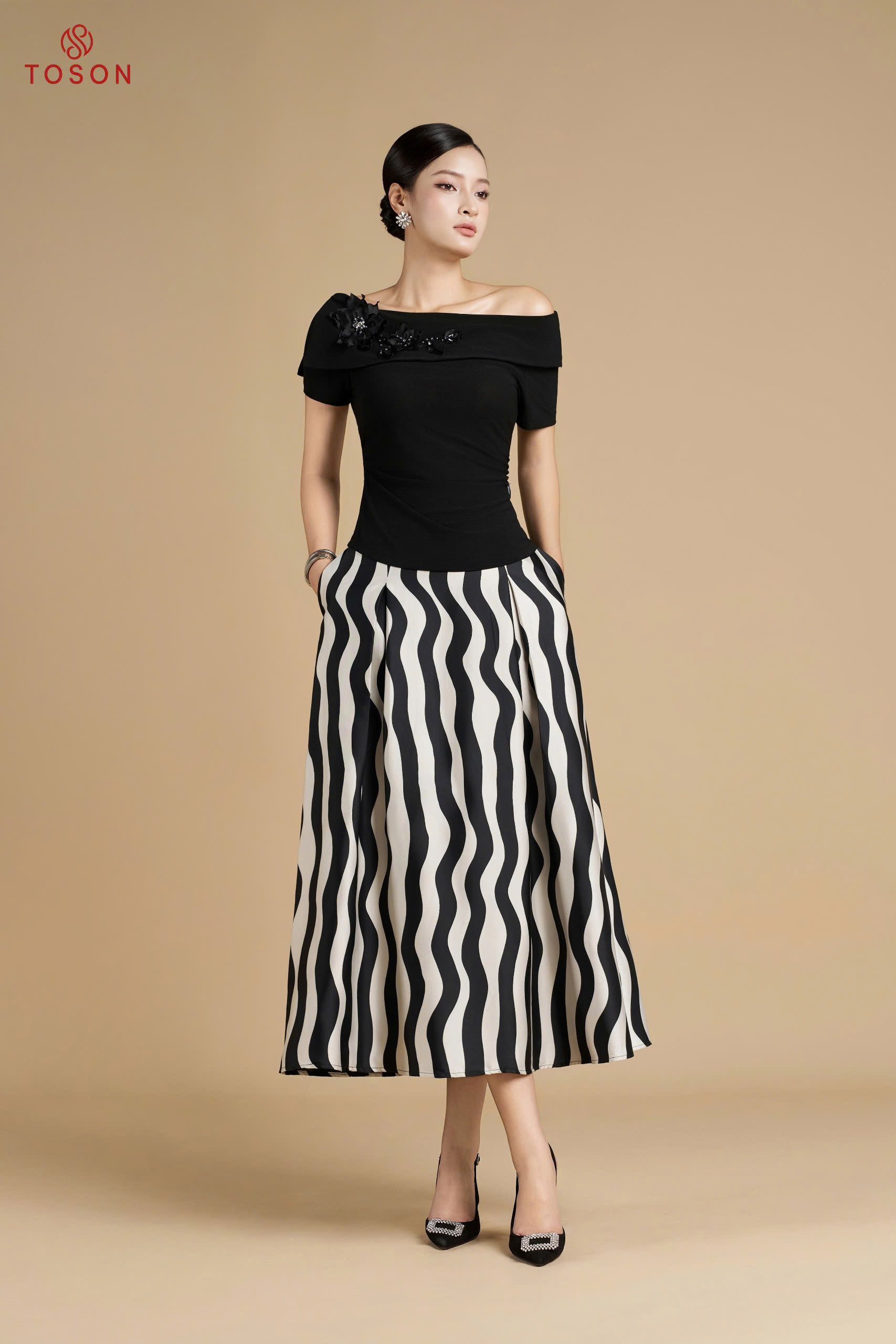 33023B65 - Chân váy trượt hàn đen xòe súp ly