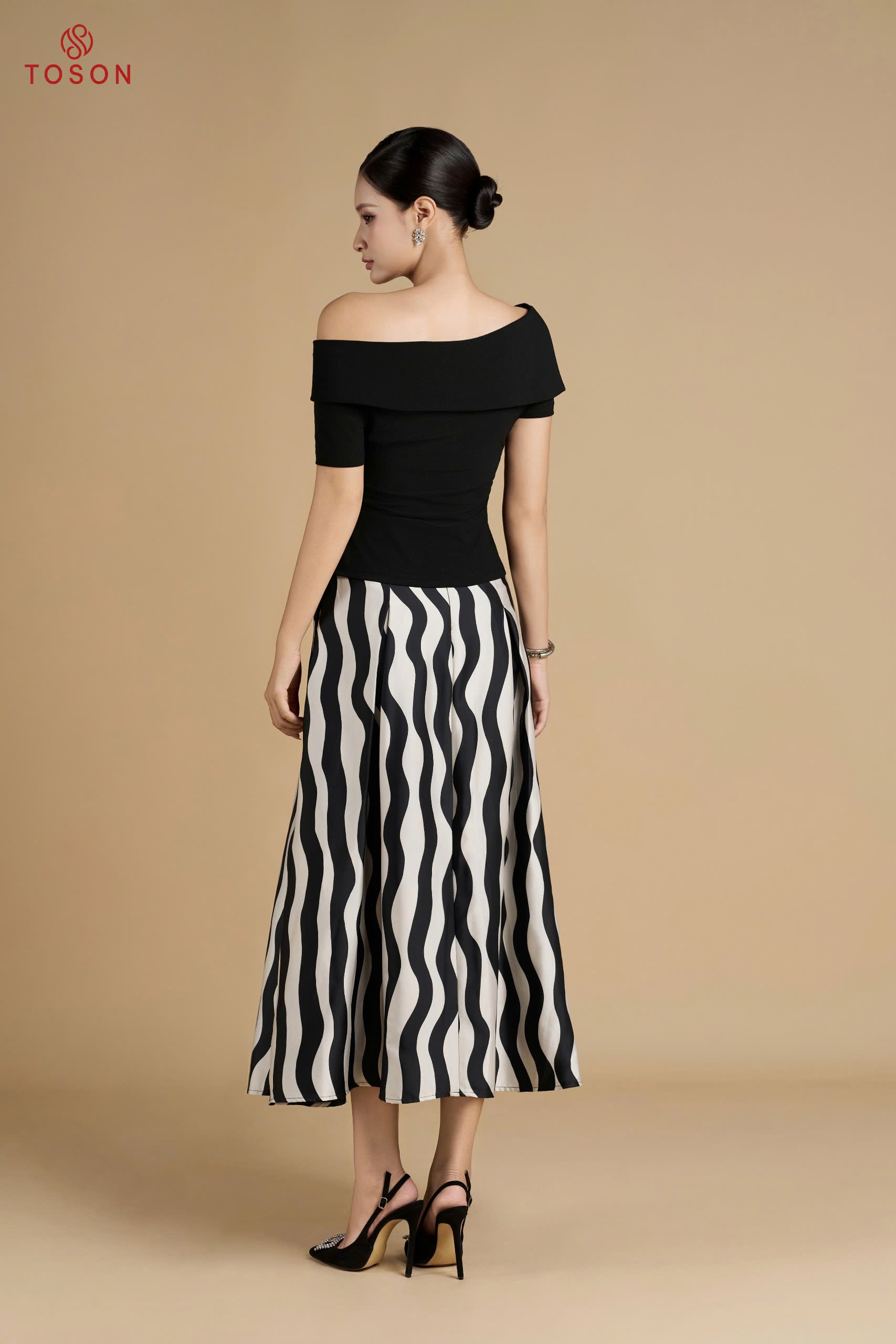 B1233B85 - Bộ carolan đen: áo xoắn bụng+ Q suông