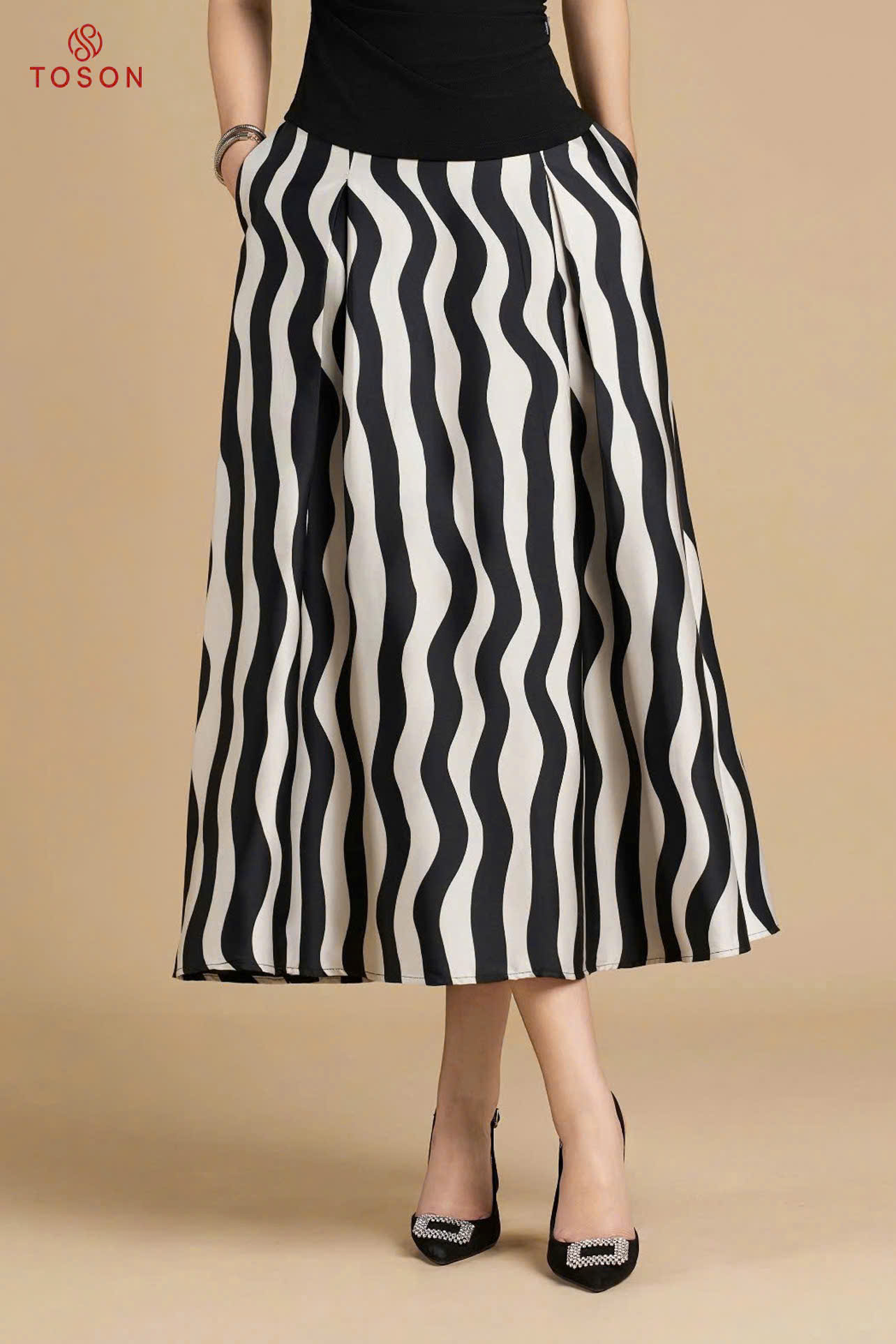 34044 - Chân váy lụa xếp kẻ sóng (limitted)