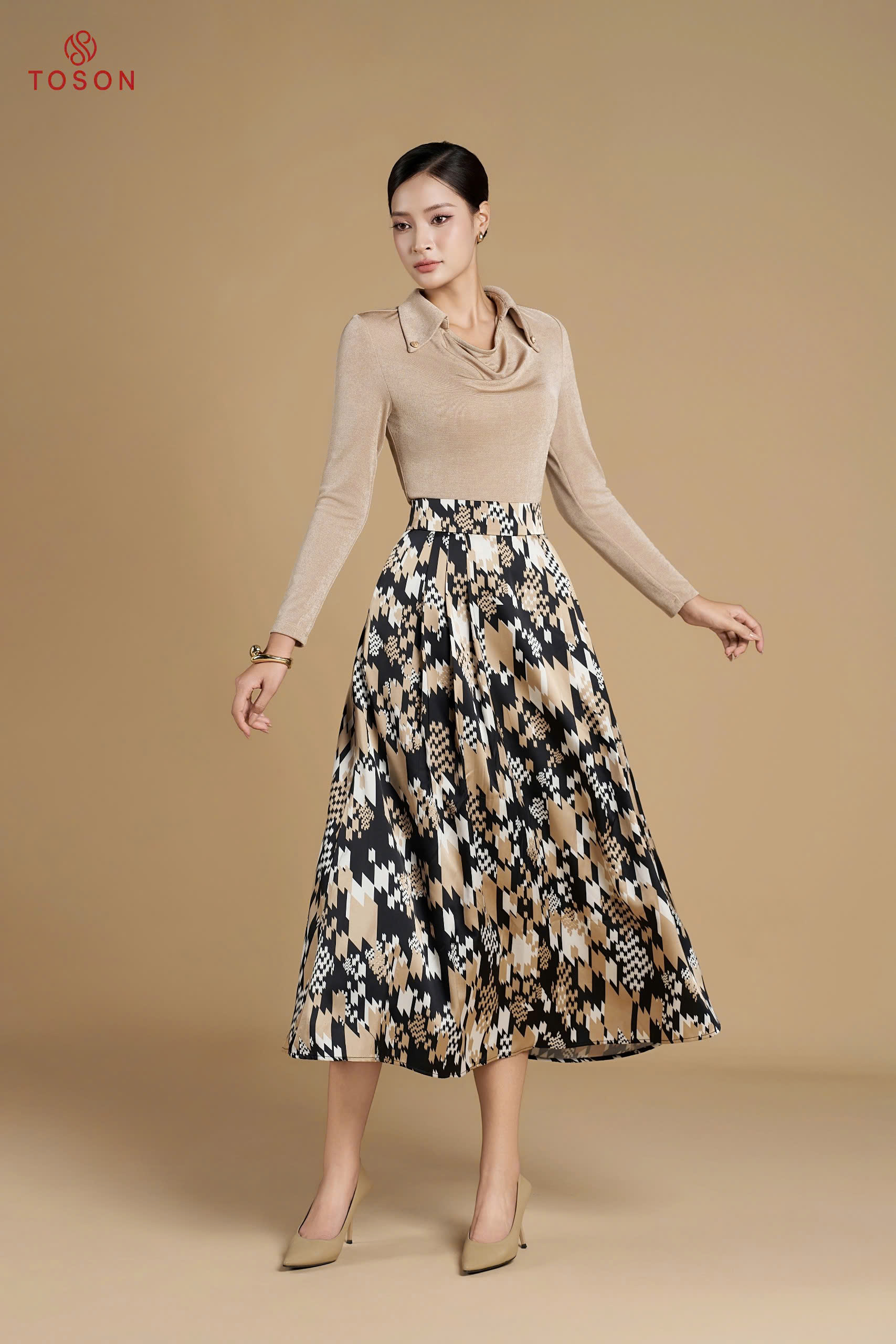 34044 - Chân váy lụa xếp kẻ sóng (limitted)