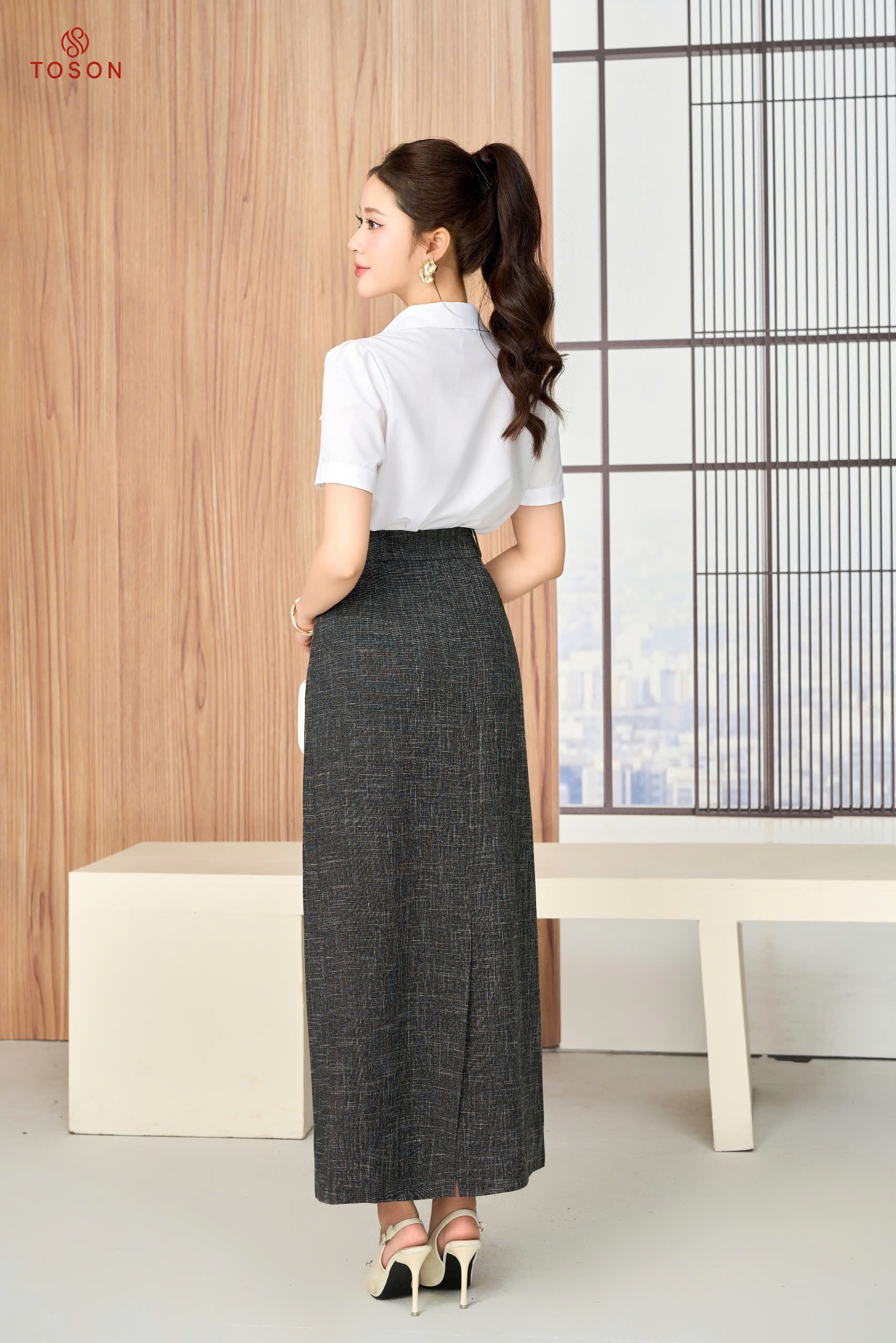 33066D66 - Chân váy xòe đũi đen bổ túi xếp ly