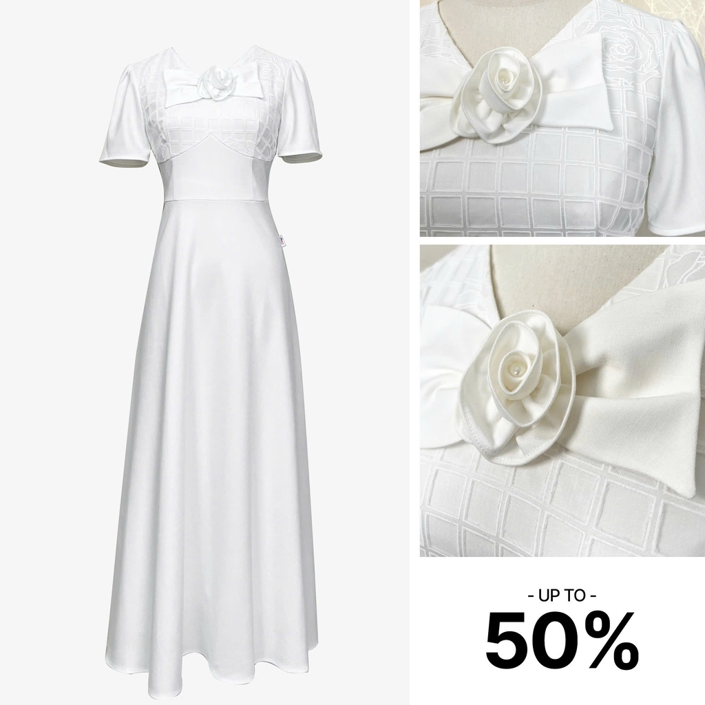 43041W95 - Đầm xước nhật trắng đắp organza hoa