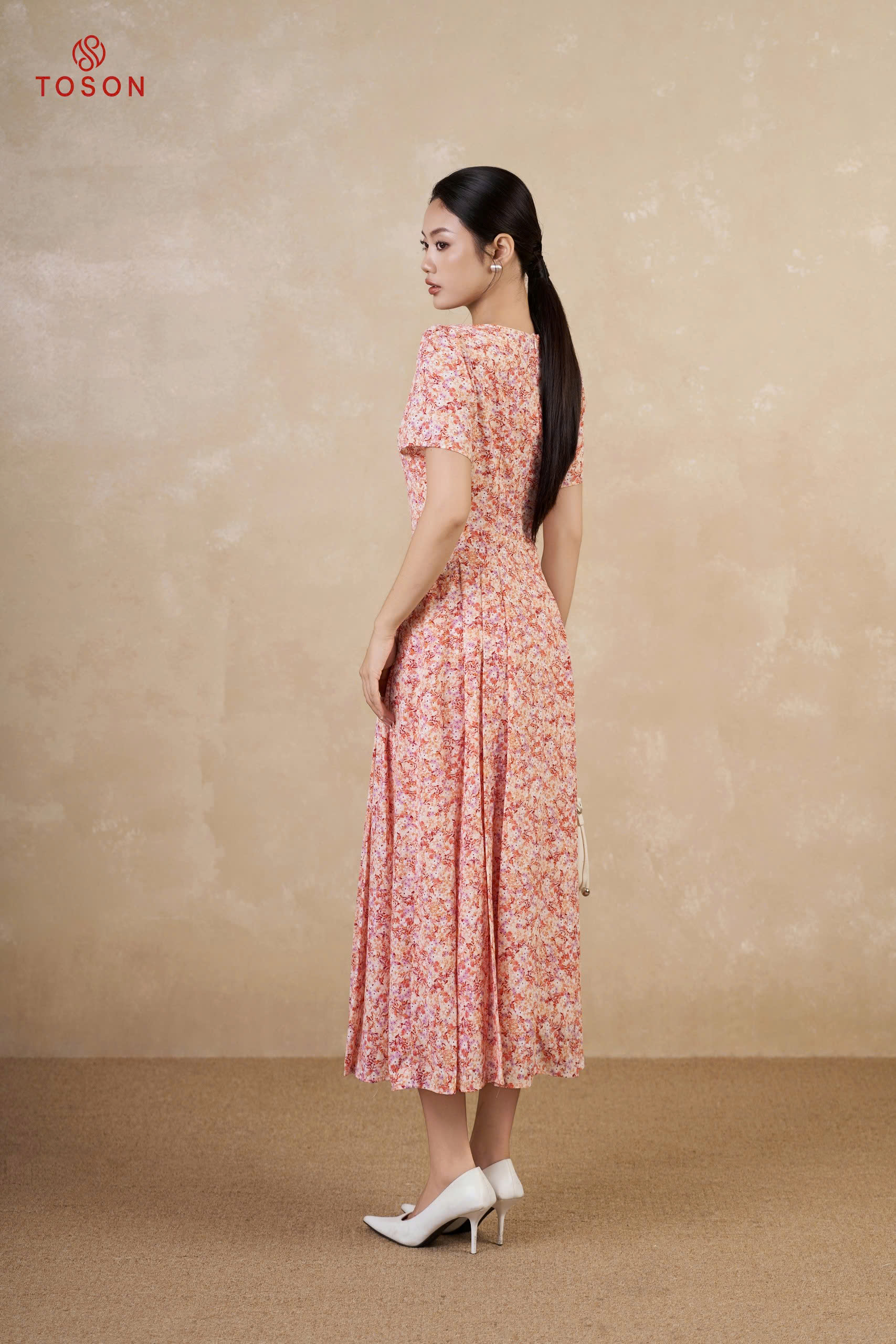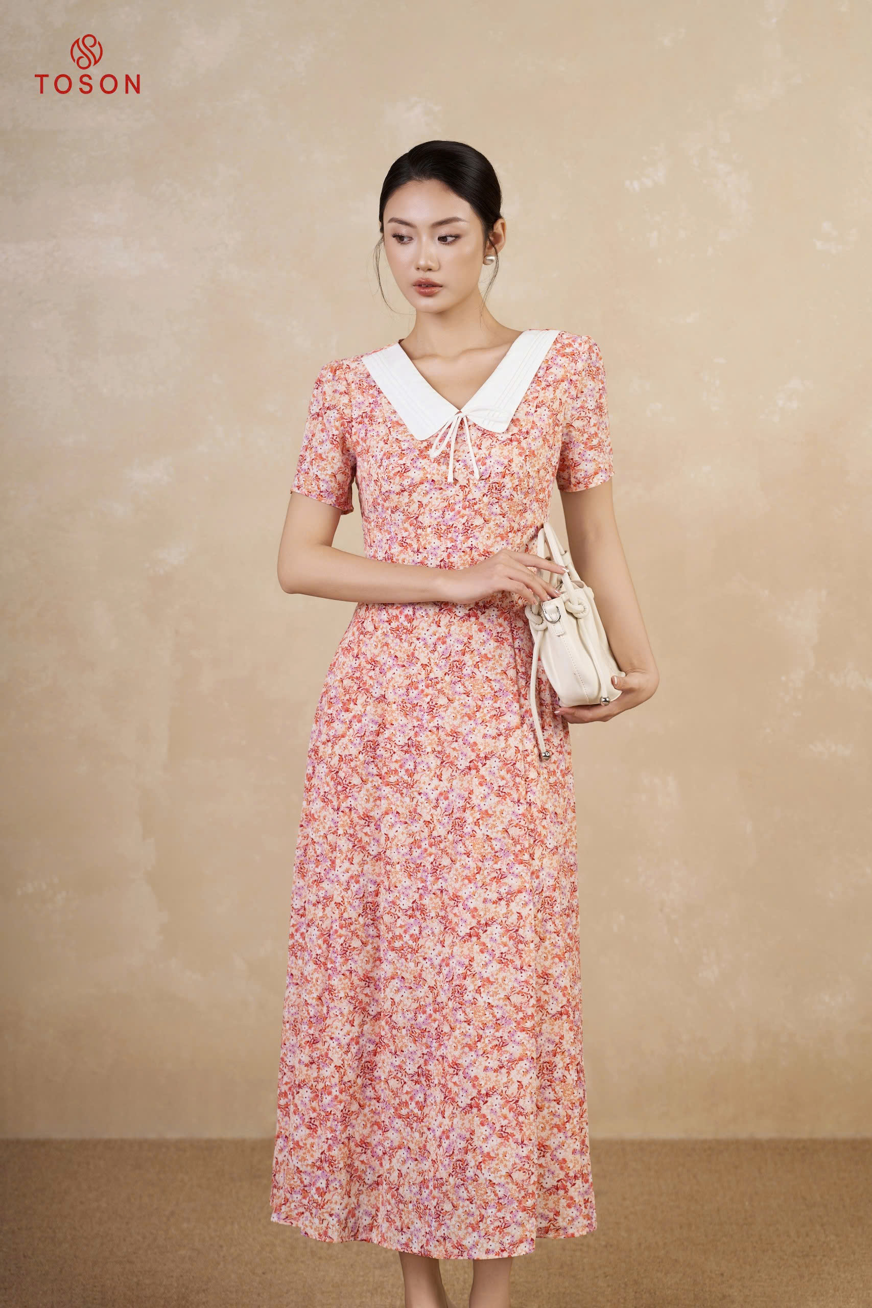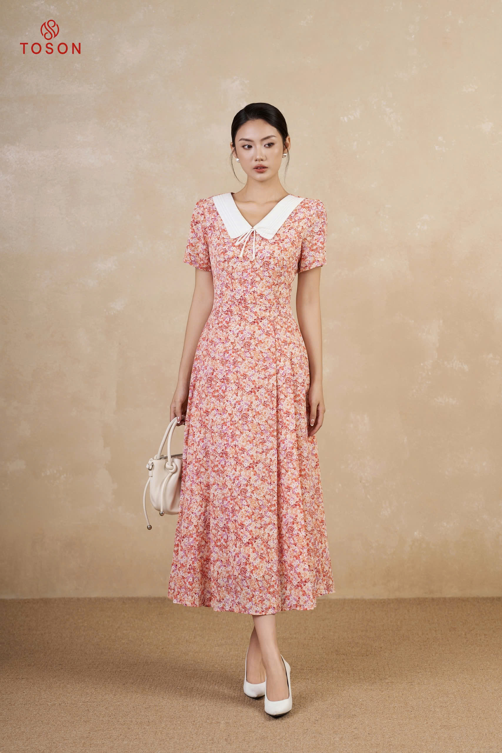 43092H65 - Đầm xòe hoa cam cố phối trắng