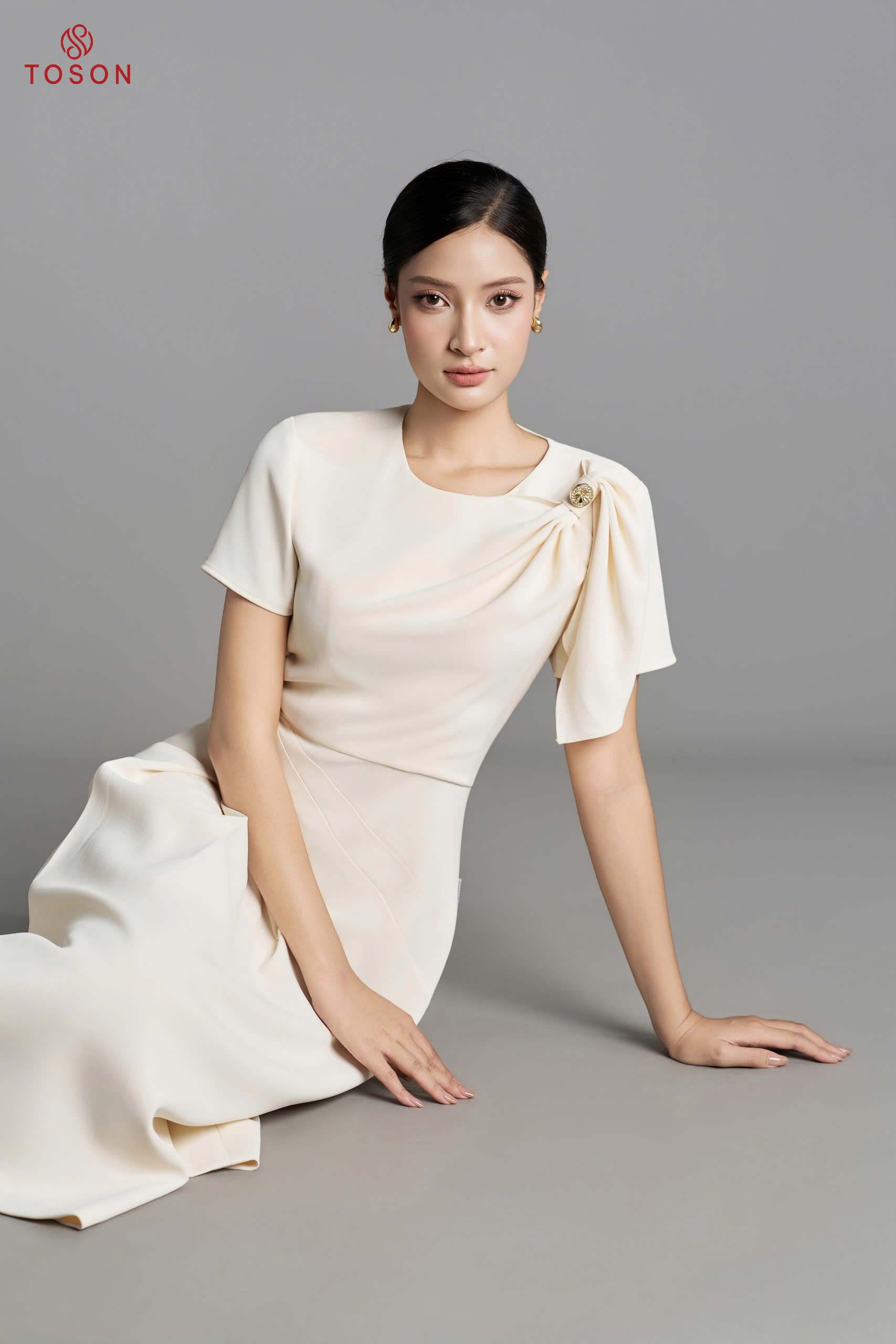 B8306 - Bộ tweet: Vest ngắn đính hoa+ C.Váy dài
