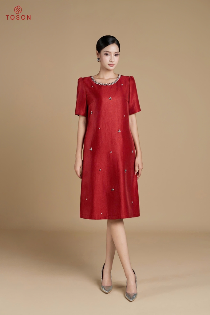 49033D66 - Đầm suông tapta đỏ ánh kim đính cườm TT
