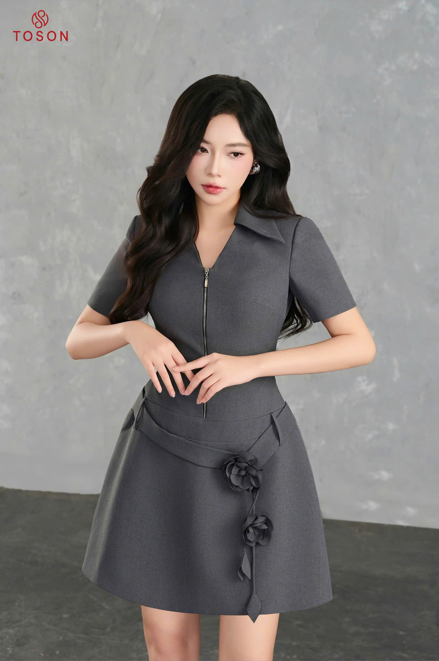 49315G75 - Đầm ghi chì dáng A lót quần trong