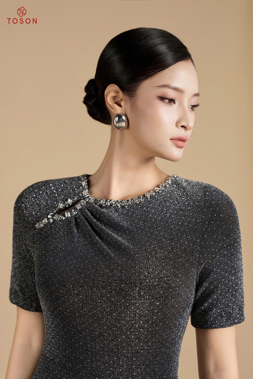 49918B95 - Đầm tay lỡ kim tuyến ánh bạc