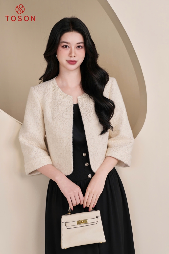 82021 - Áo khoác ngắn gấm lông thêu hoa