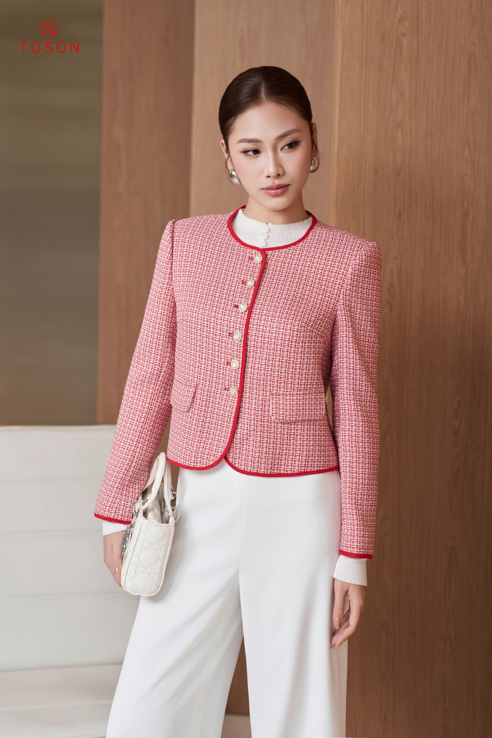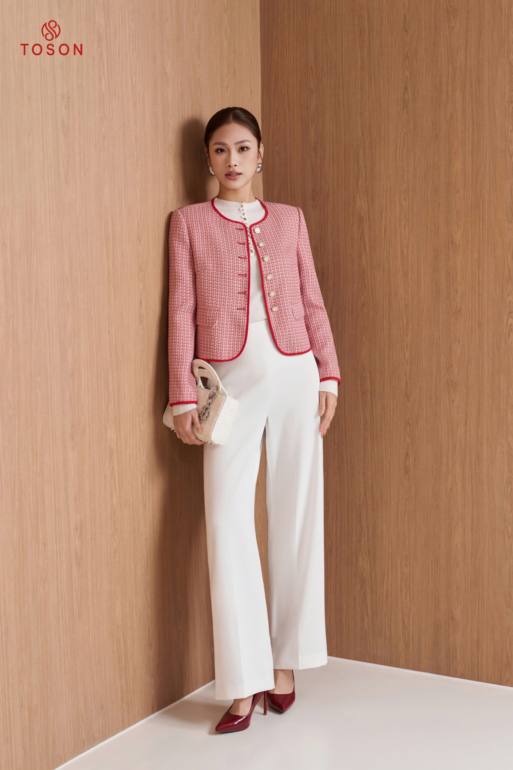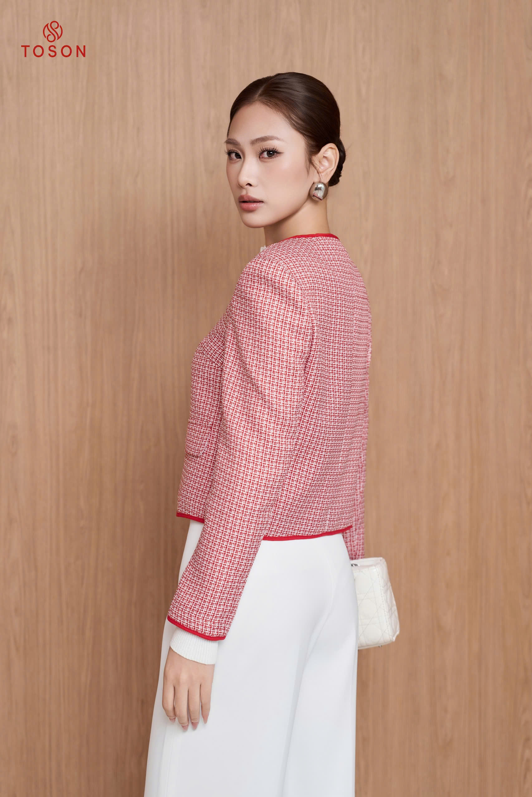 82919P95 - Áo vest ngắn dạ tweet hồng sen