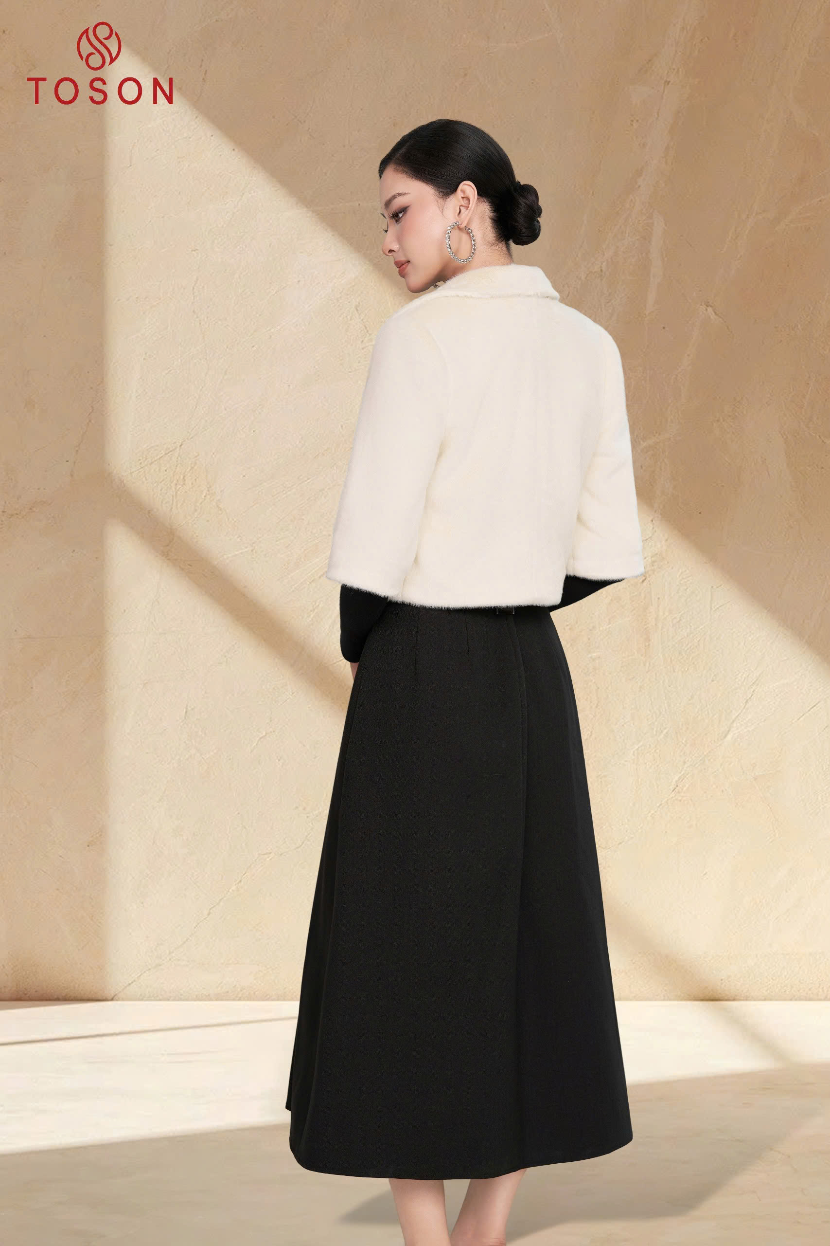 92099 - Măng tô tuýp si cổ nẹp bong thắt đai eo