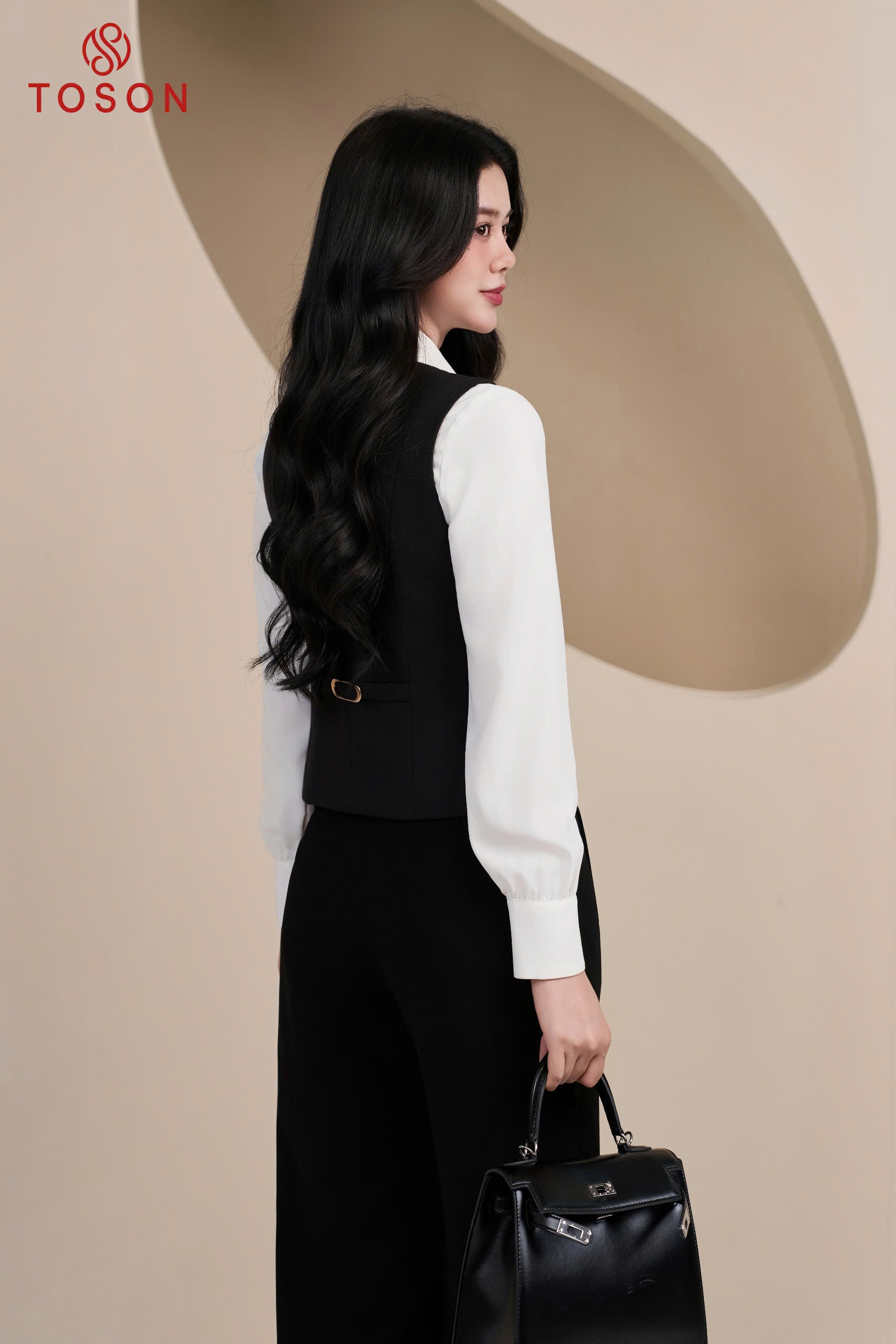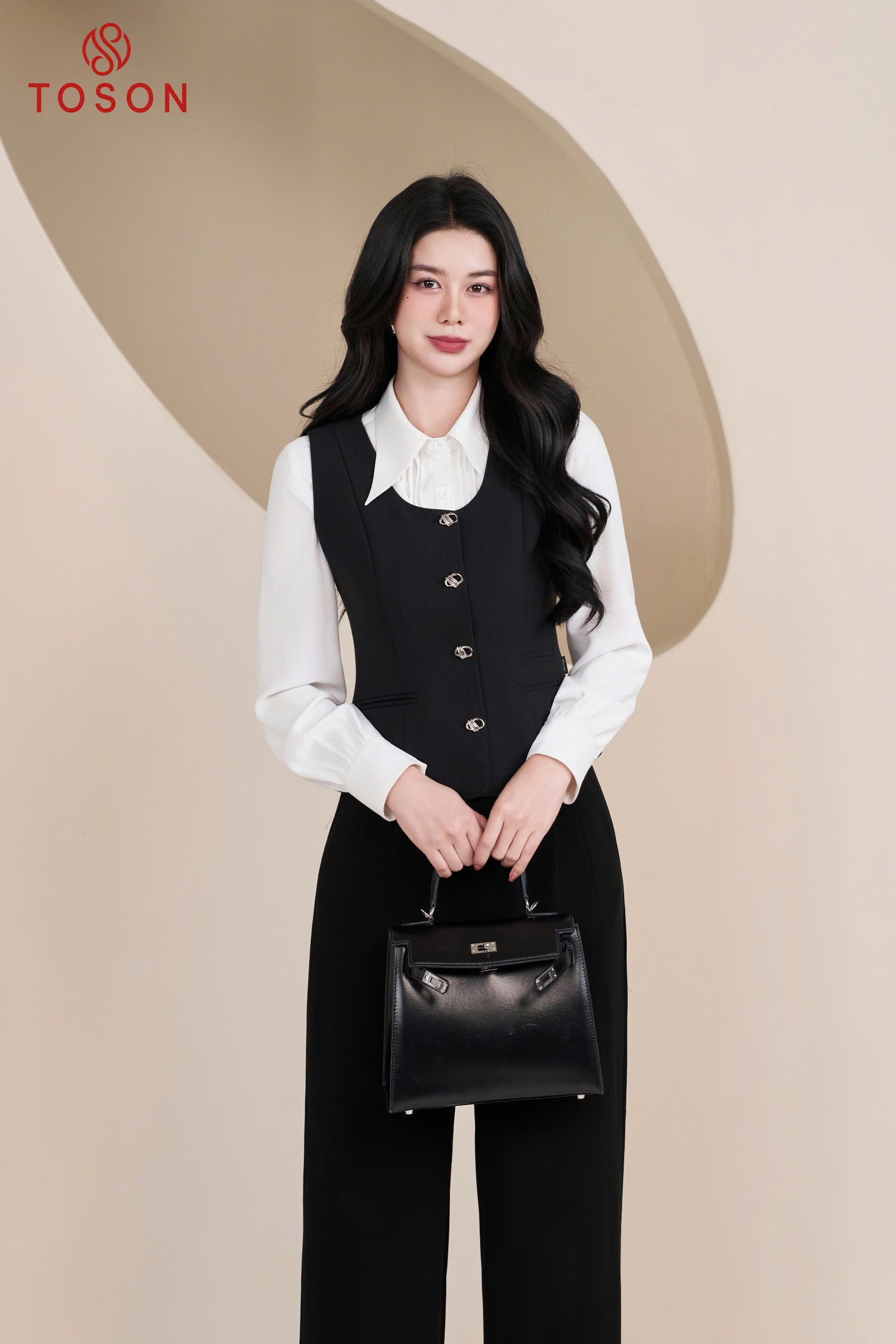86022B95 - Áo gile cổ U đính cúc trang trí