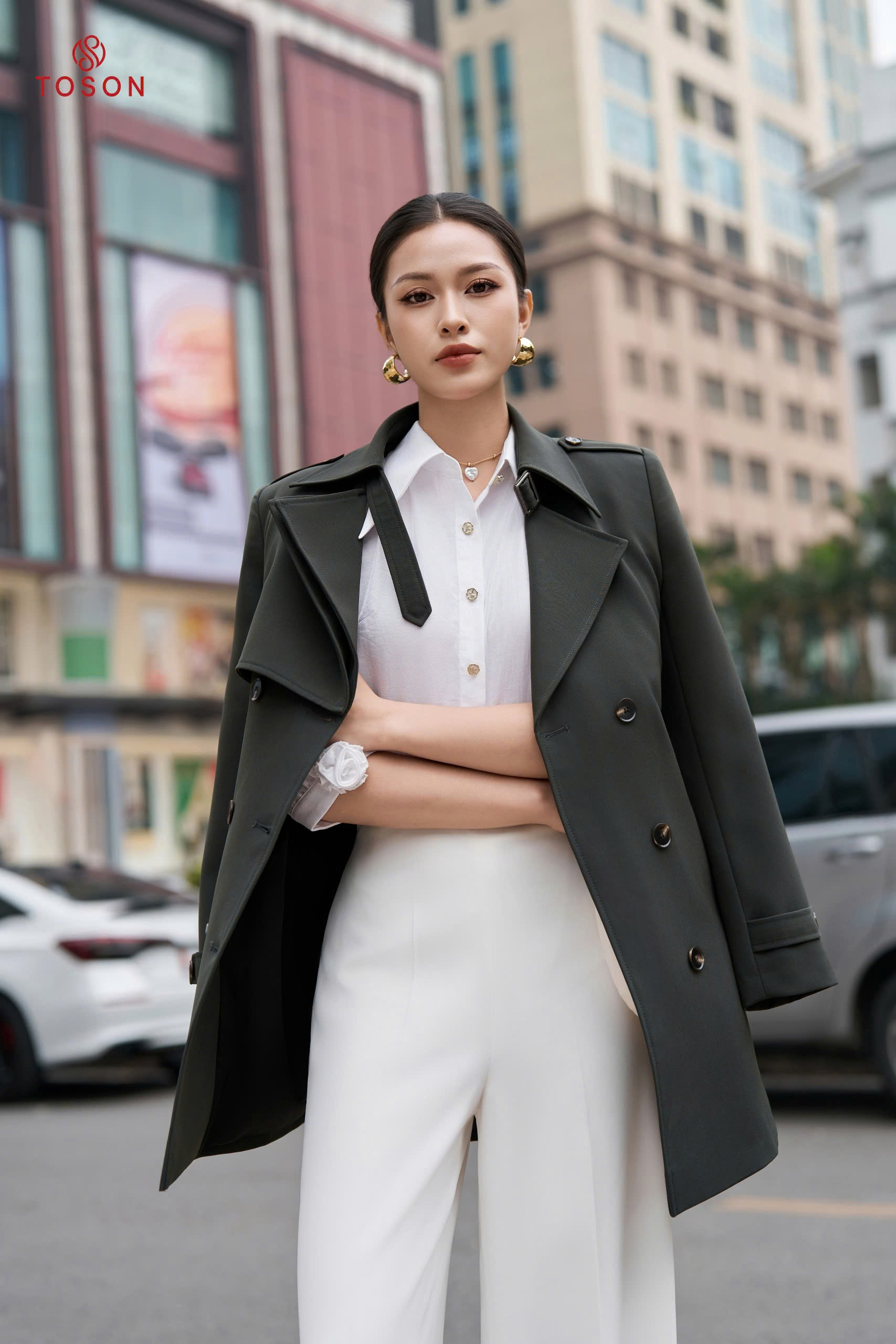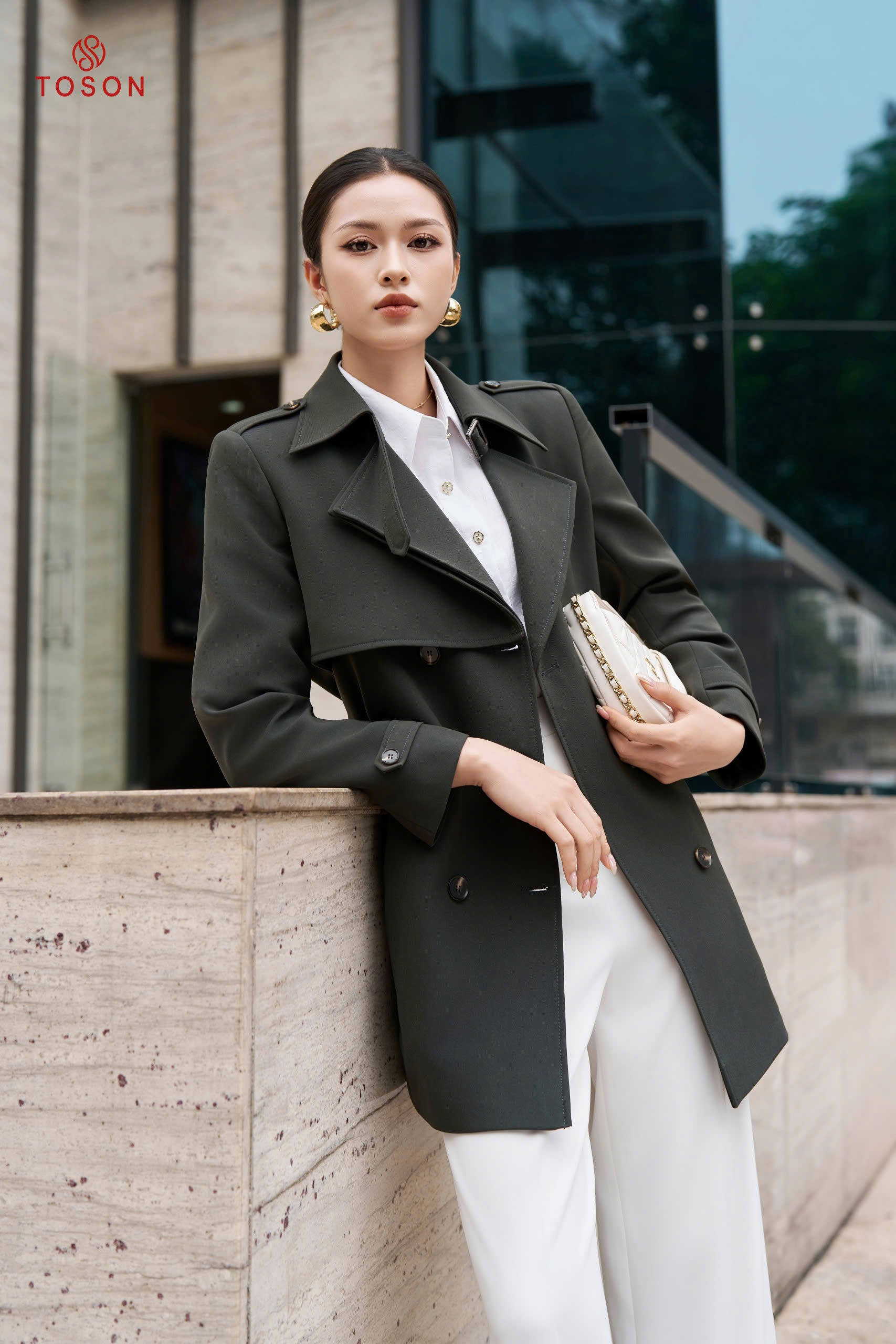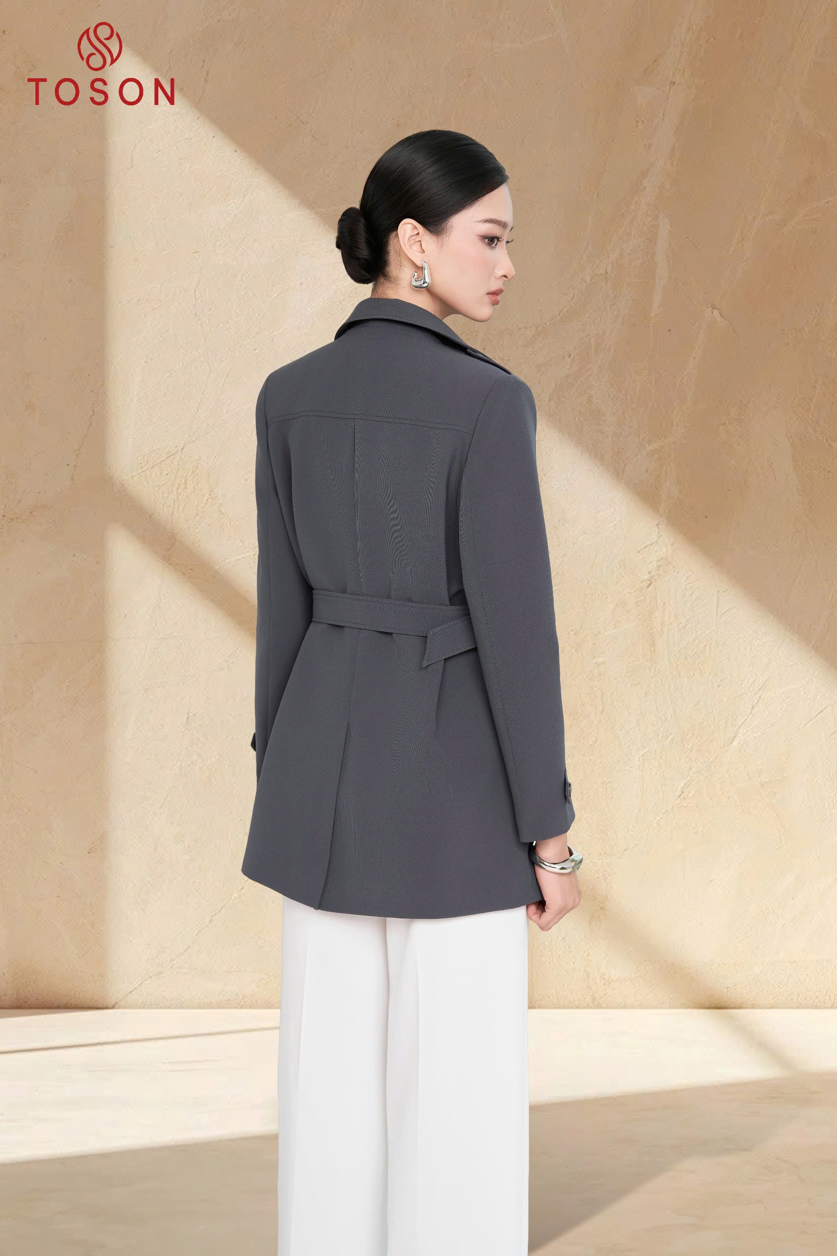 92099 - Măng tô tuýp si cổ nẹp bong thắt đai eo