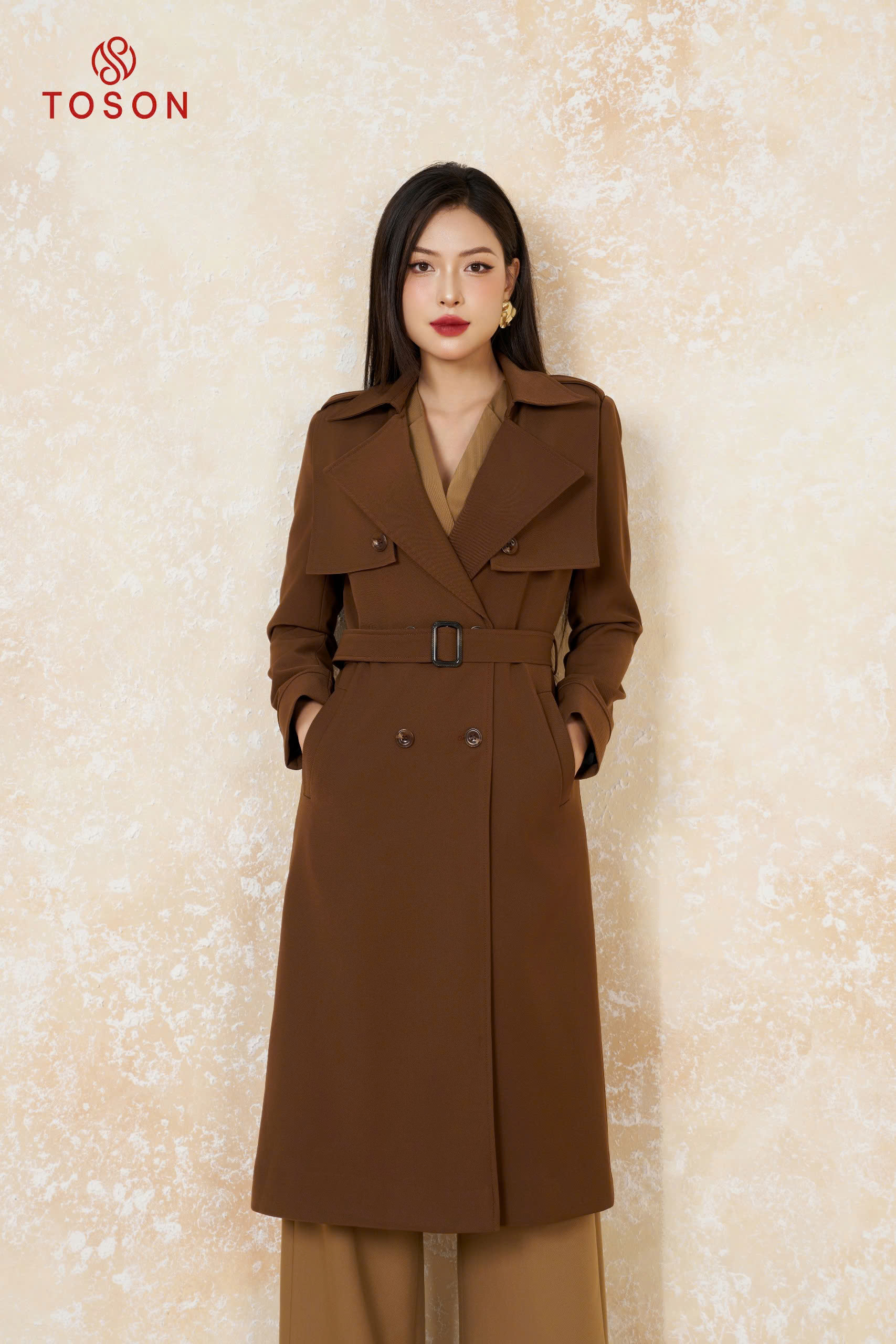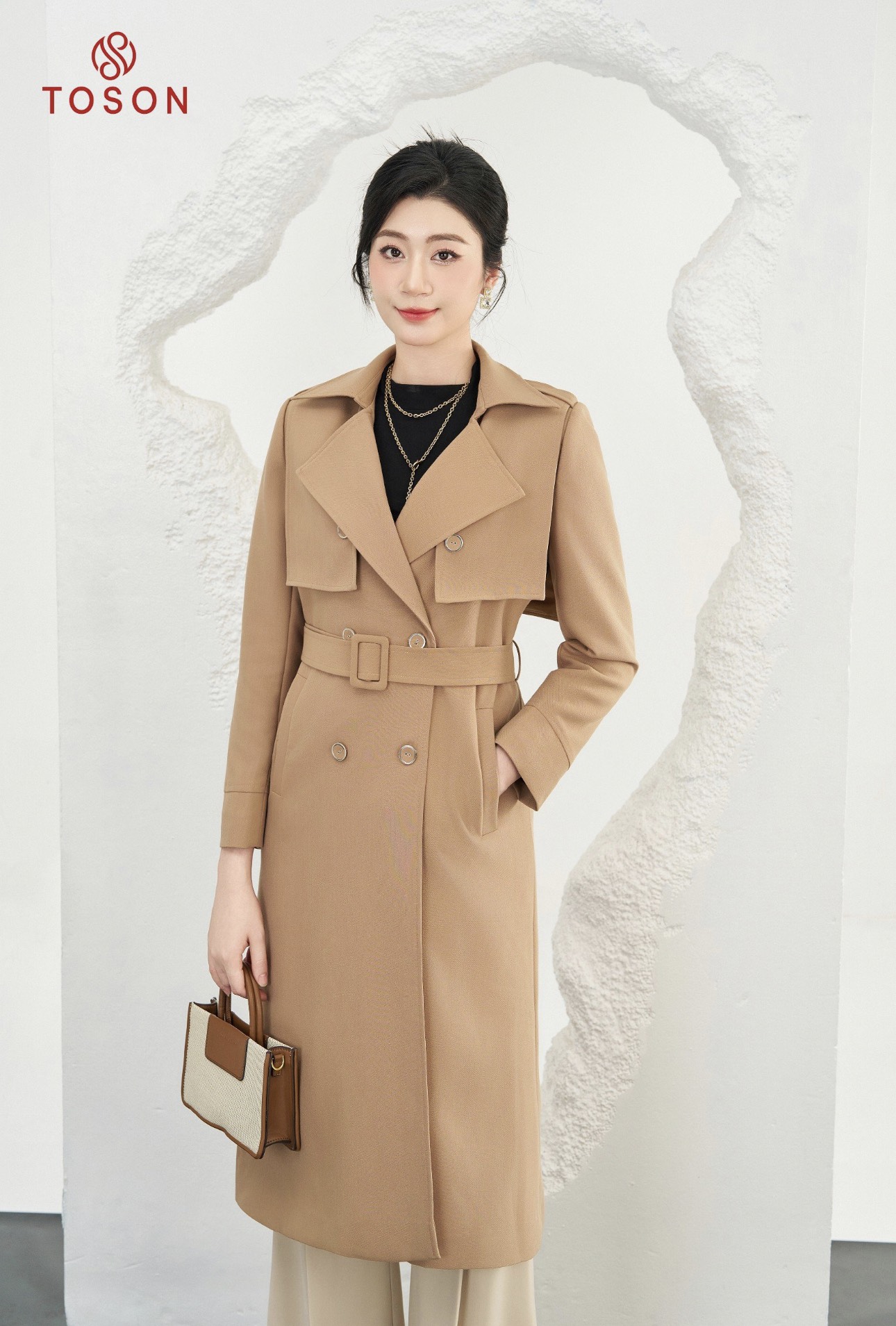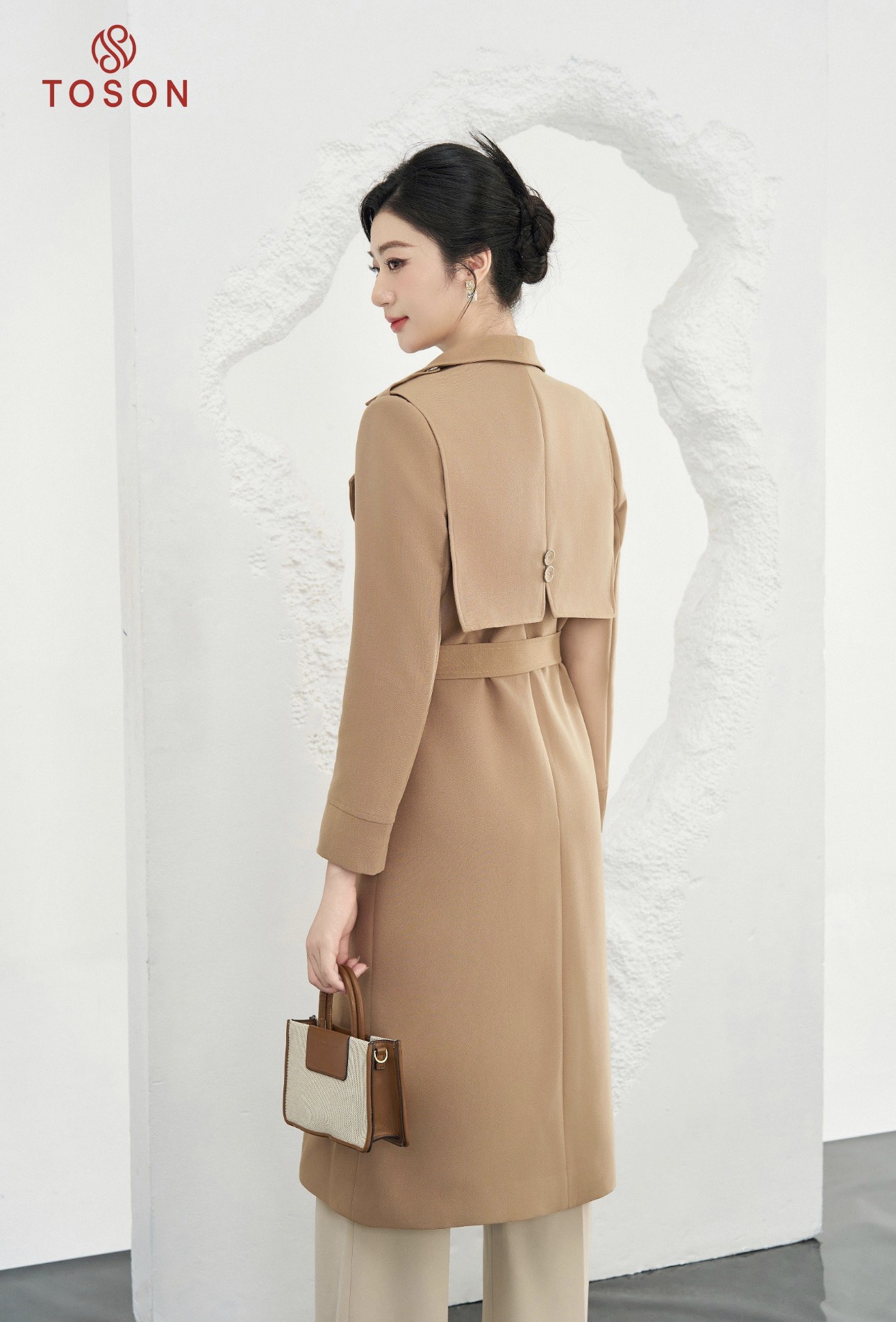 92994 - Áo măng tô Kaki cổ K tà bong 2 bên thắt đai eo