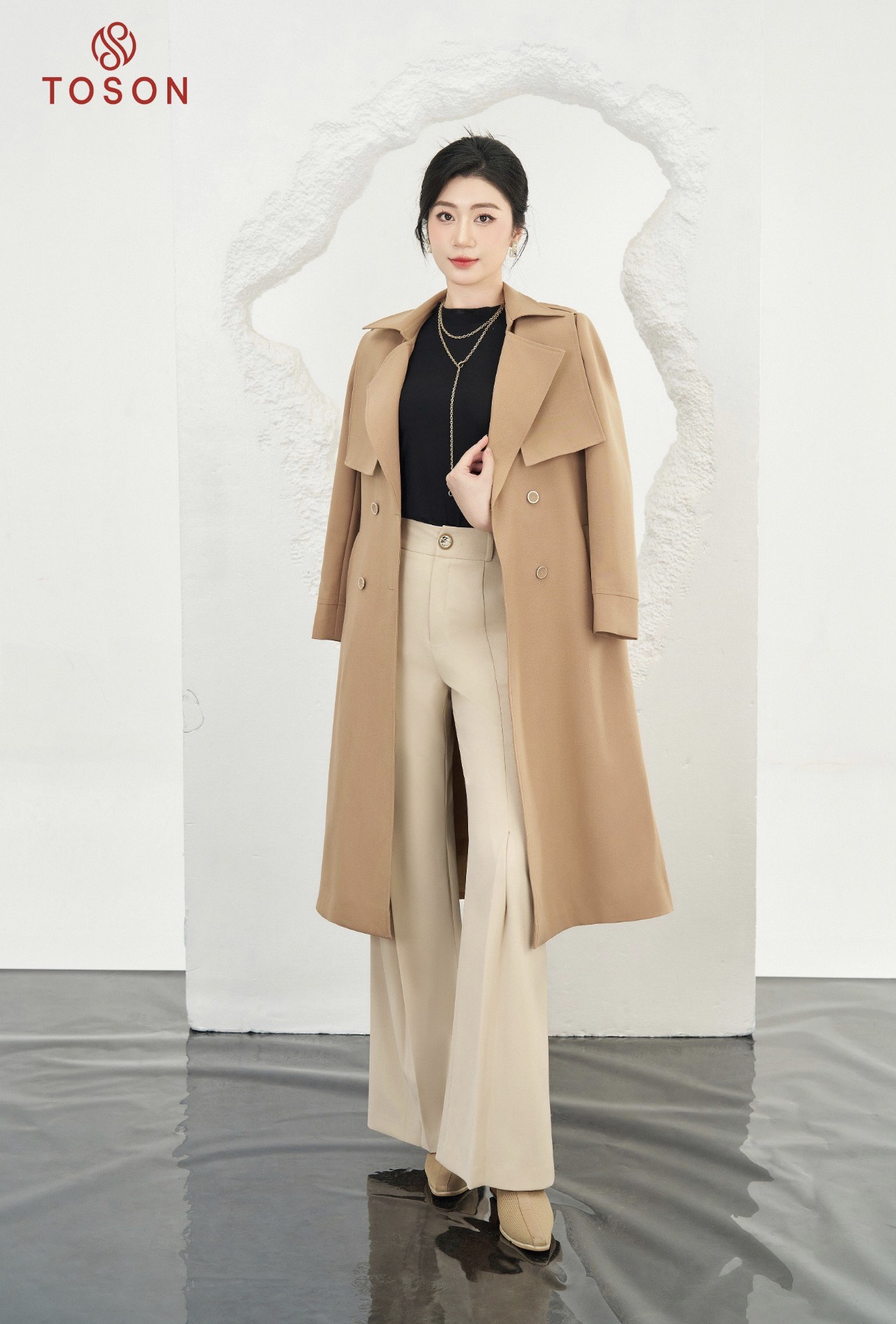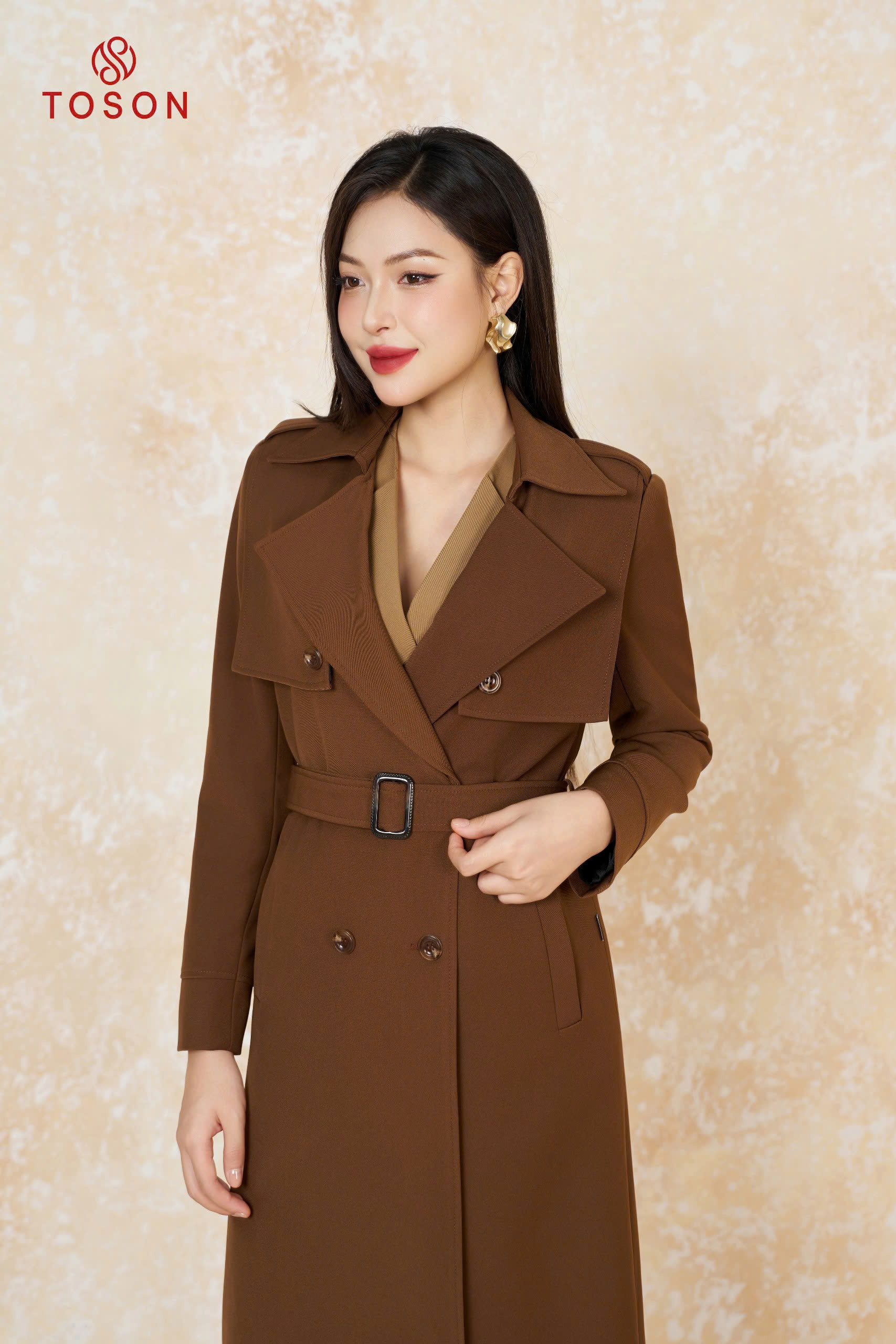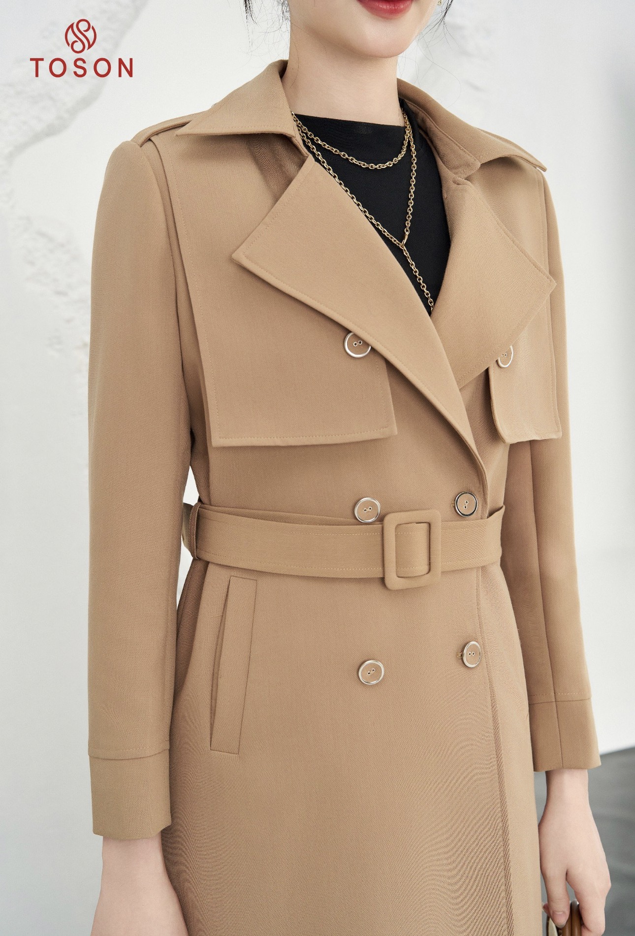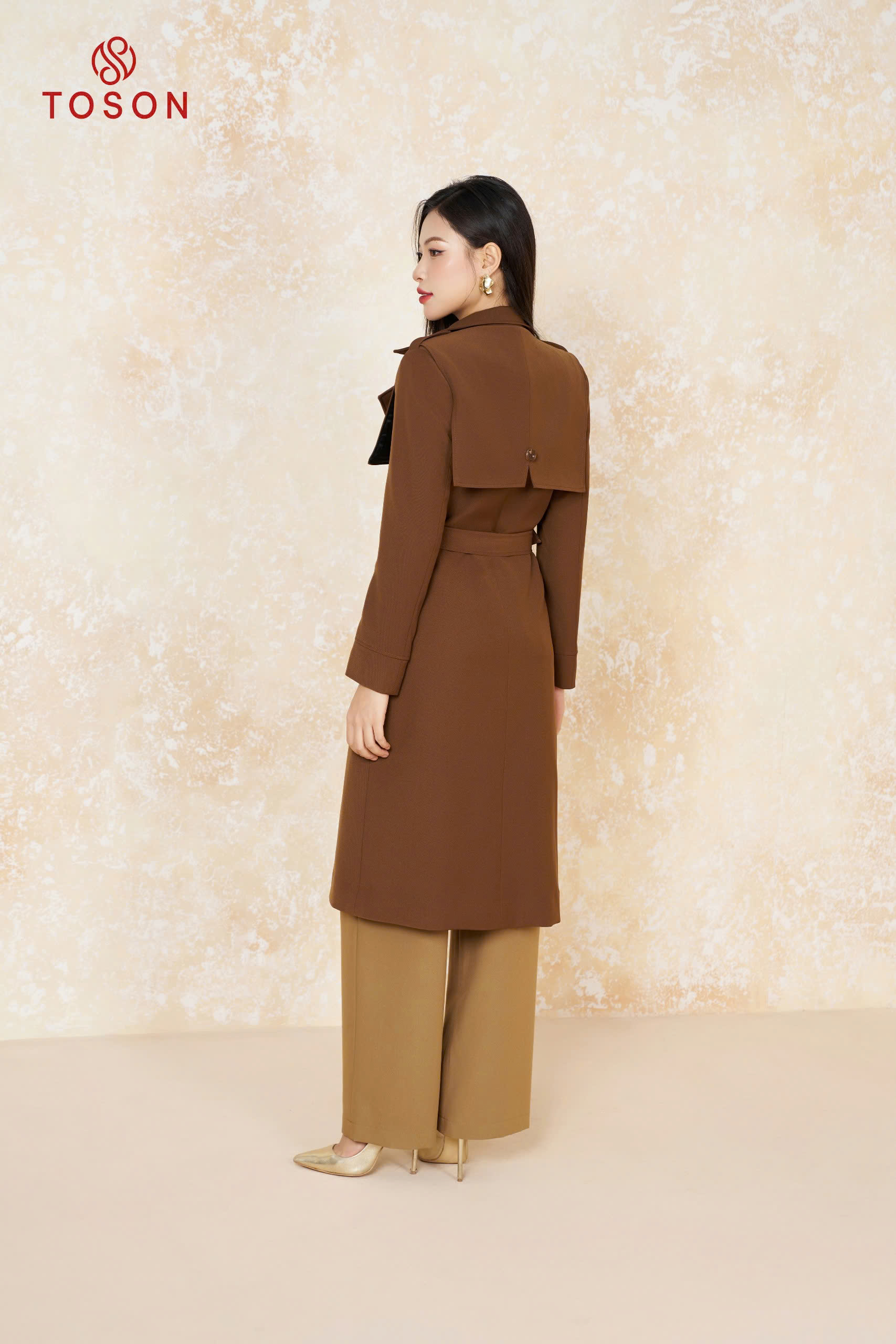 92994 - Áo măng tô Kaki cổ K tà bong 2 bên thắt đai eo