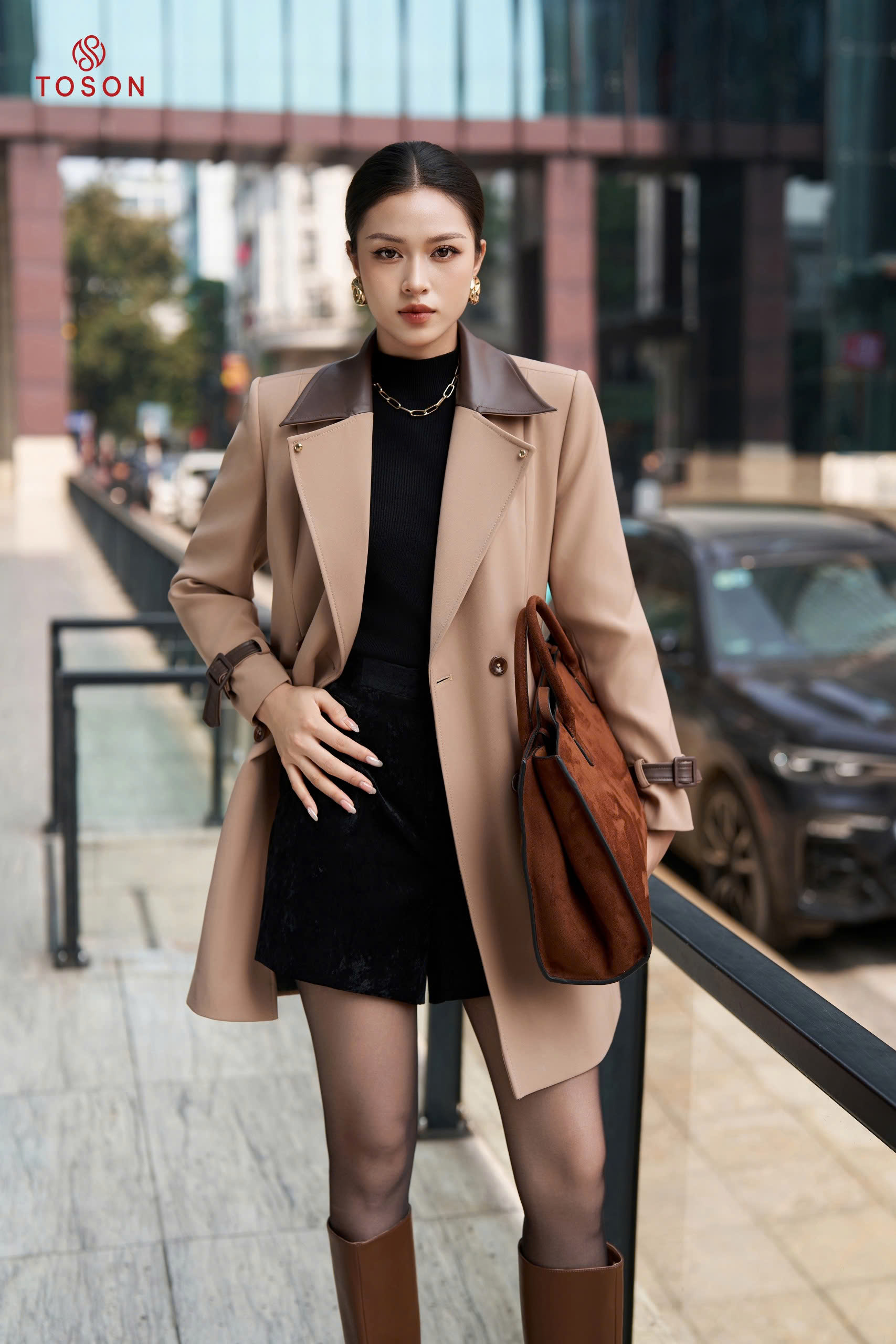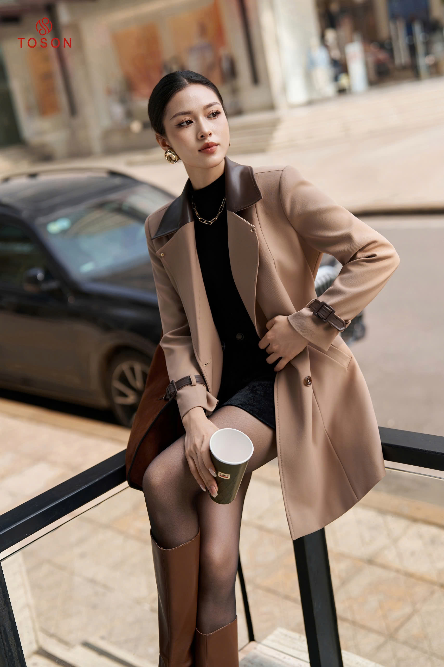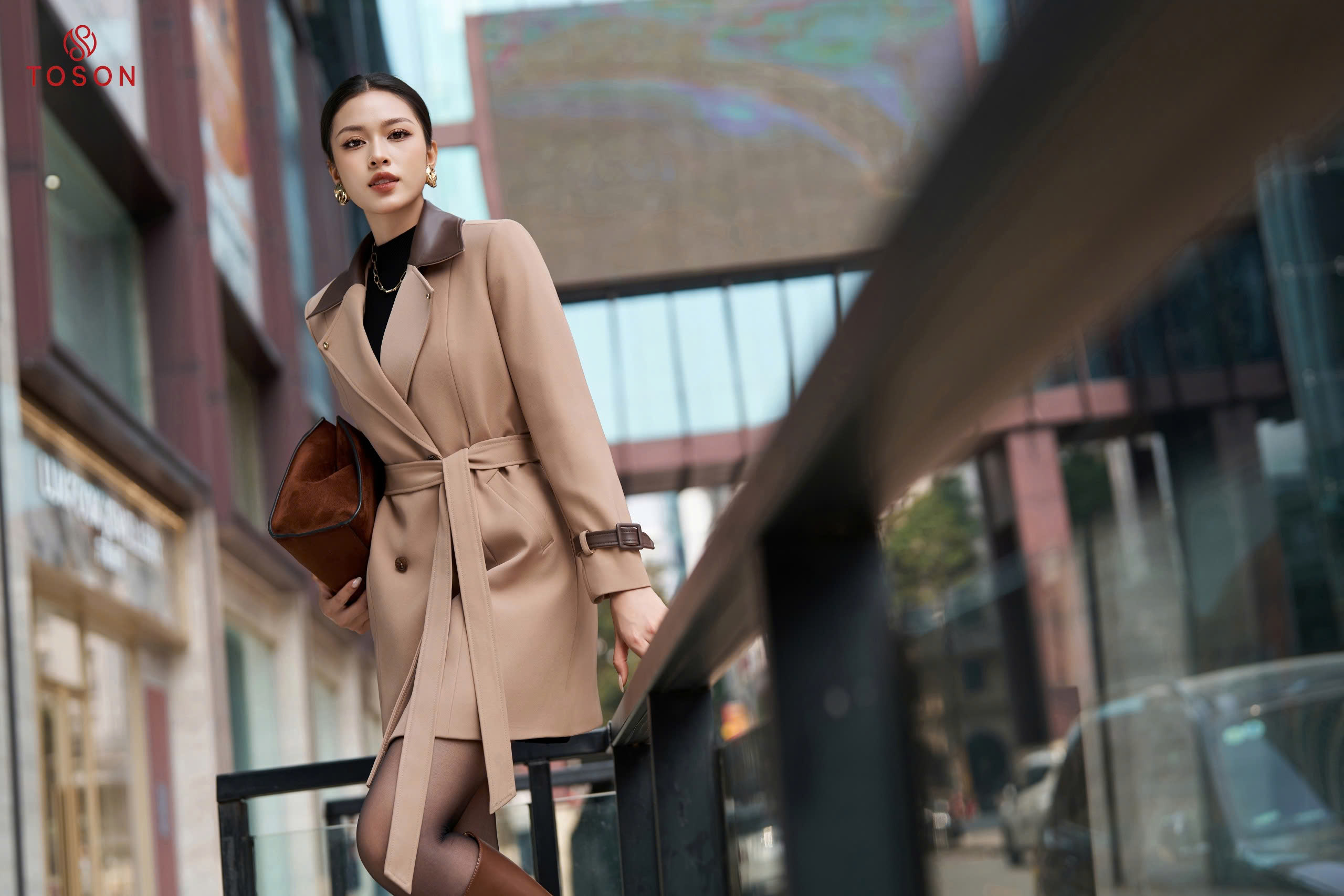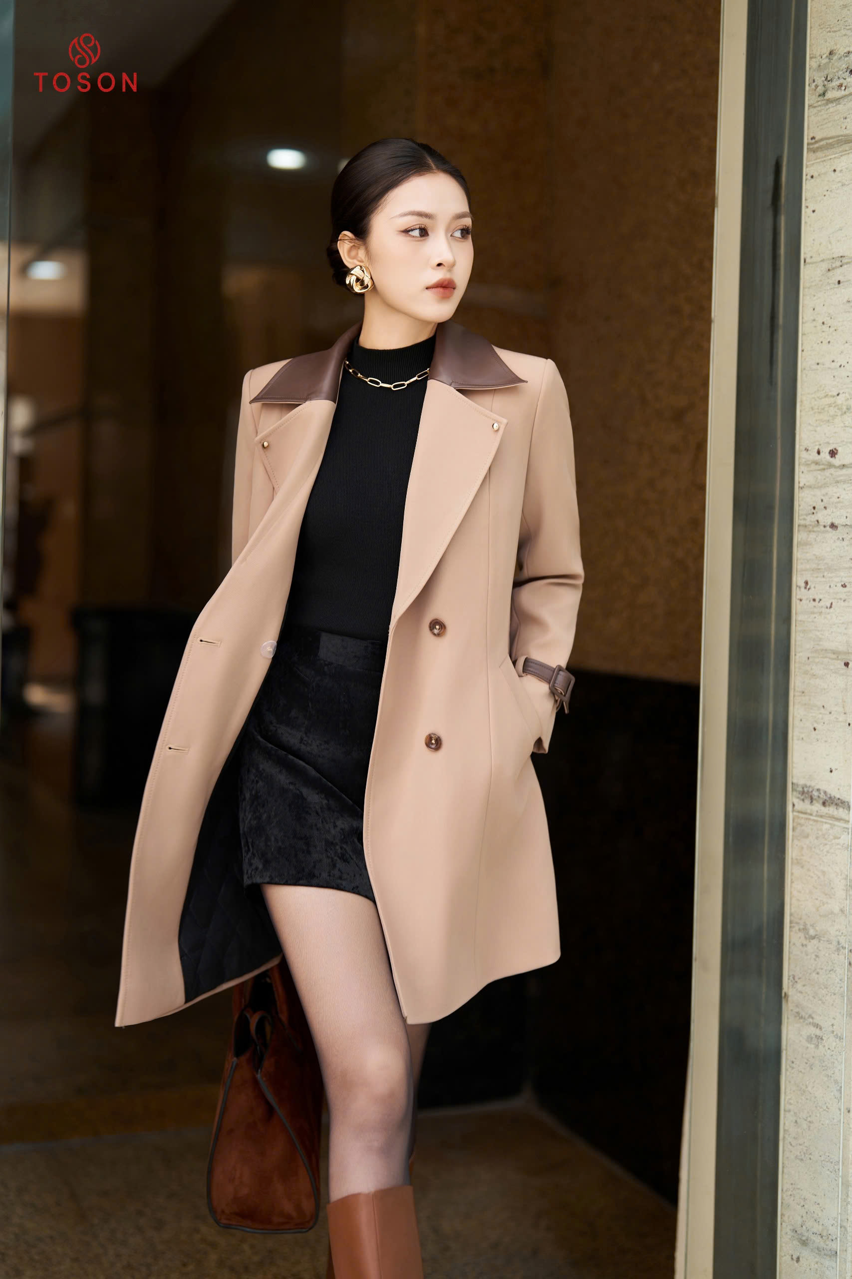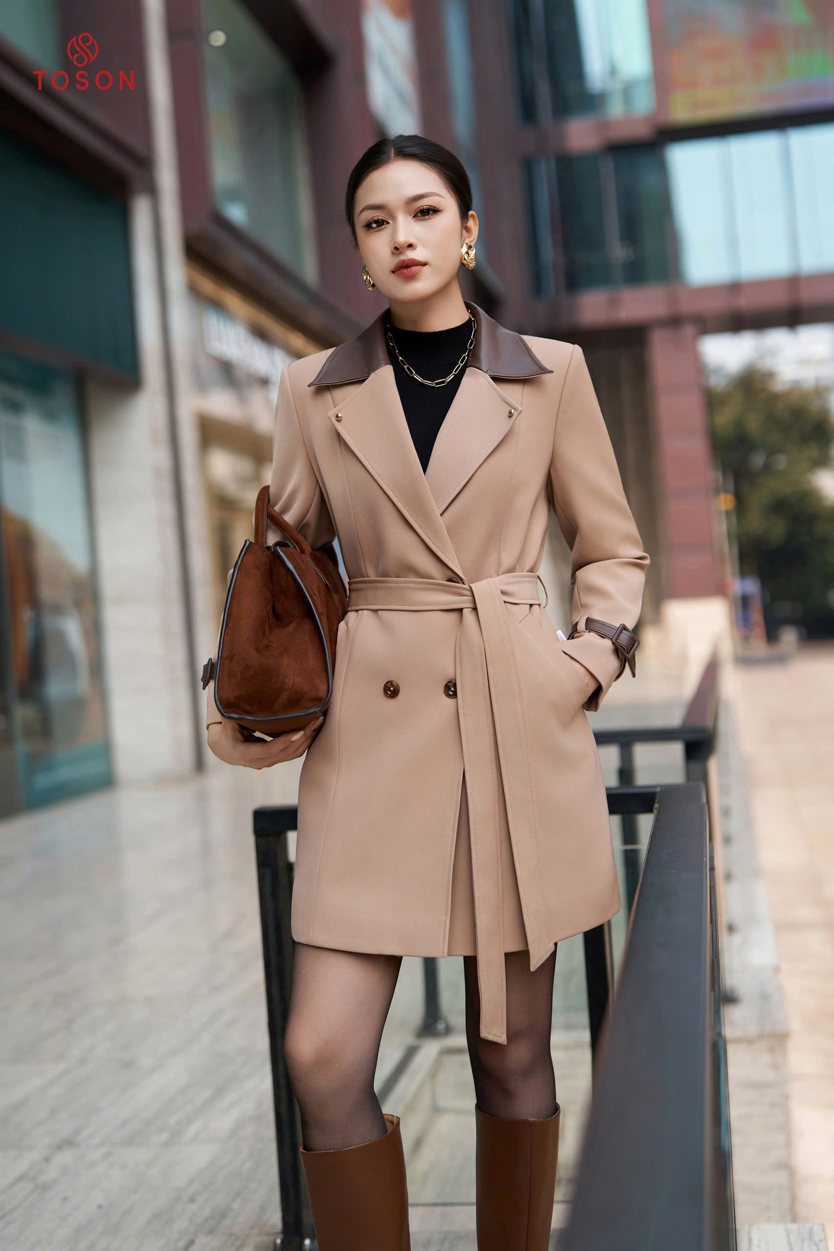 92099 - Măng tô tuýp si cổ nẹp bong thắt đai eo