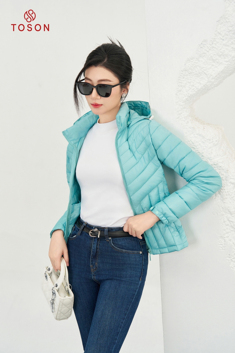 AKN44X34 - Áo phao xanh ngọc dáng ngắn ôm eo basic.