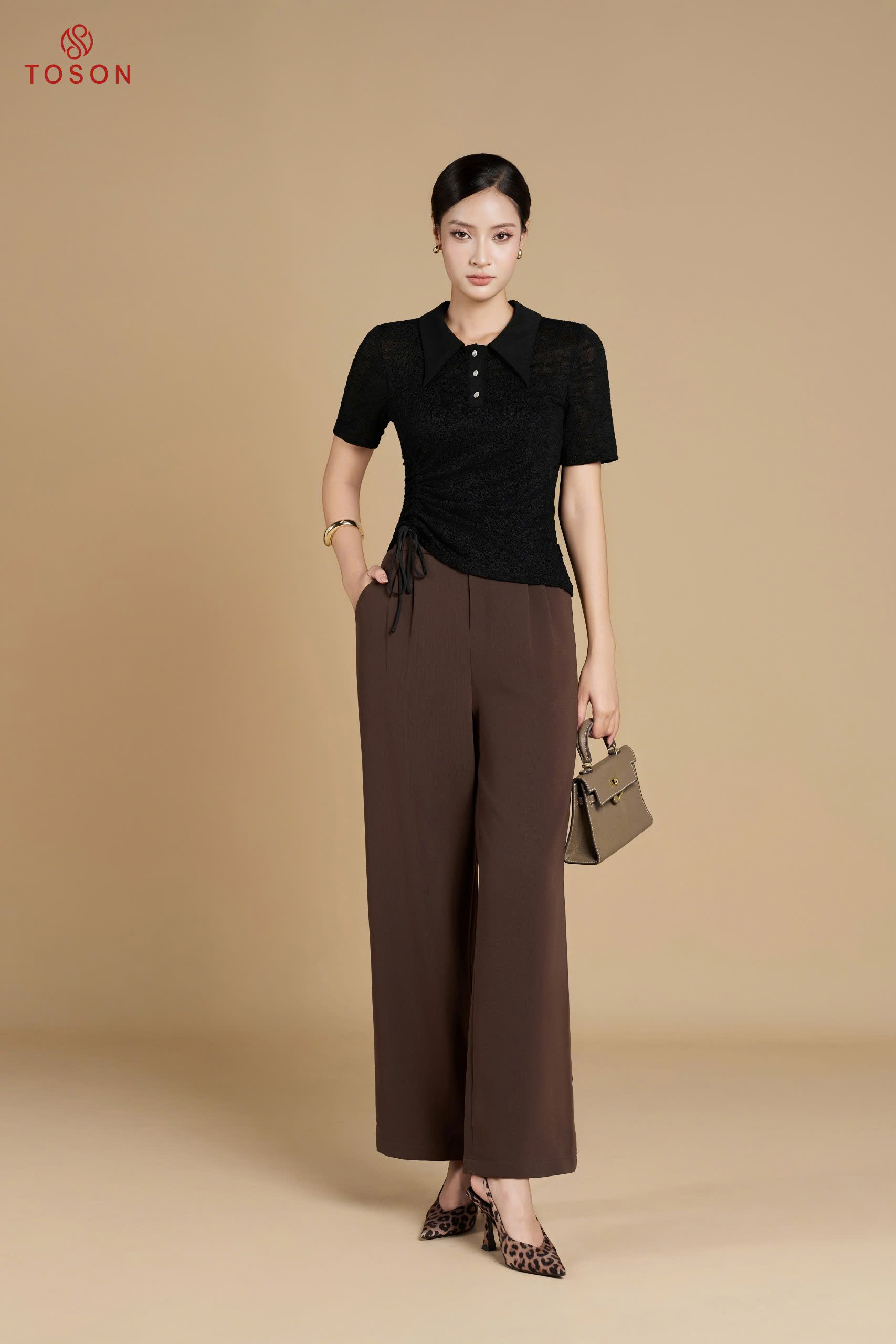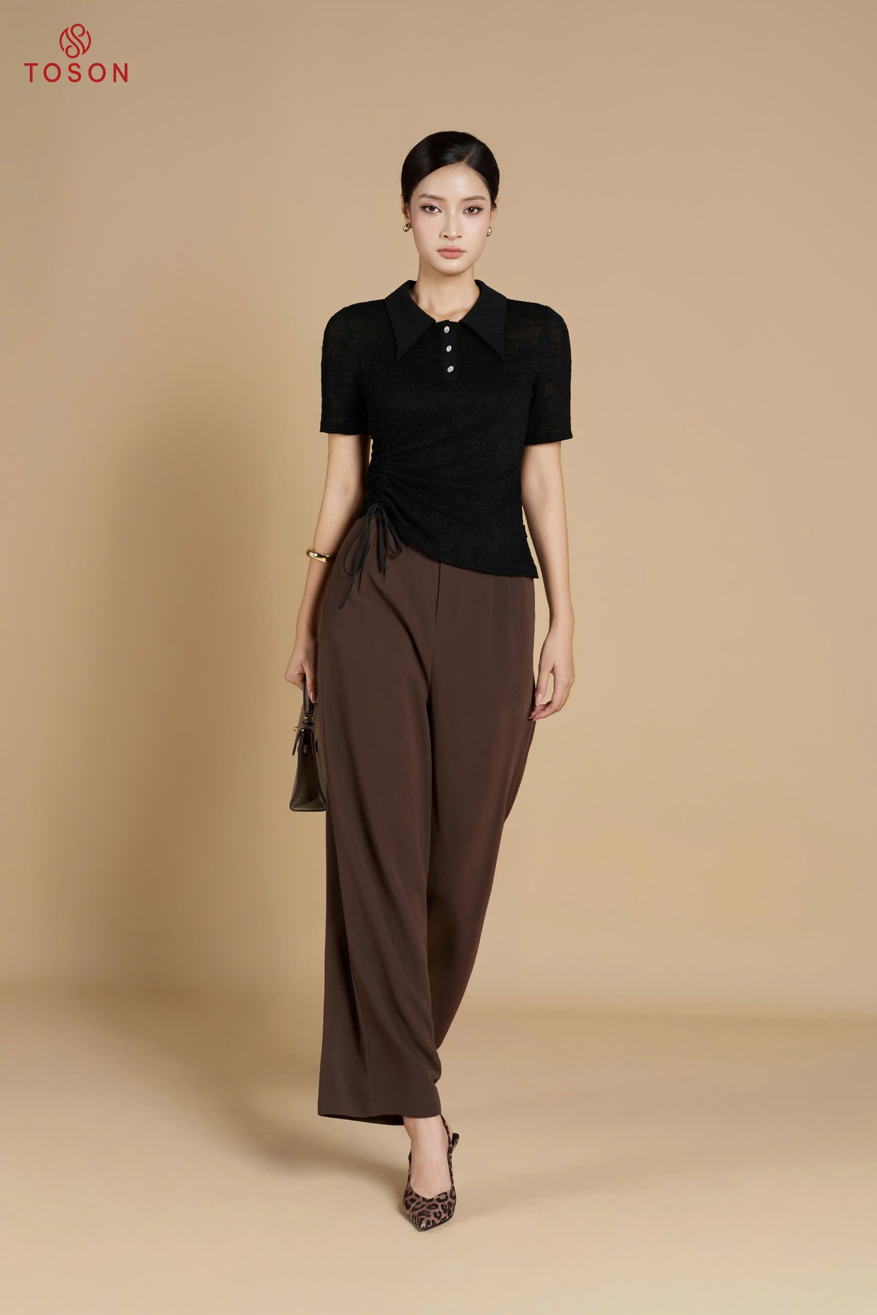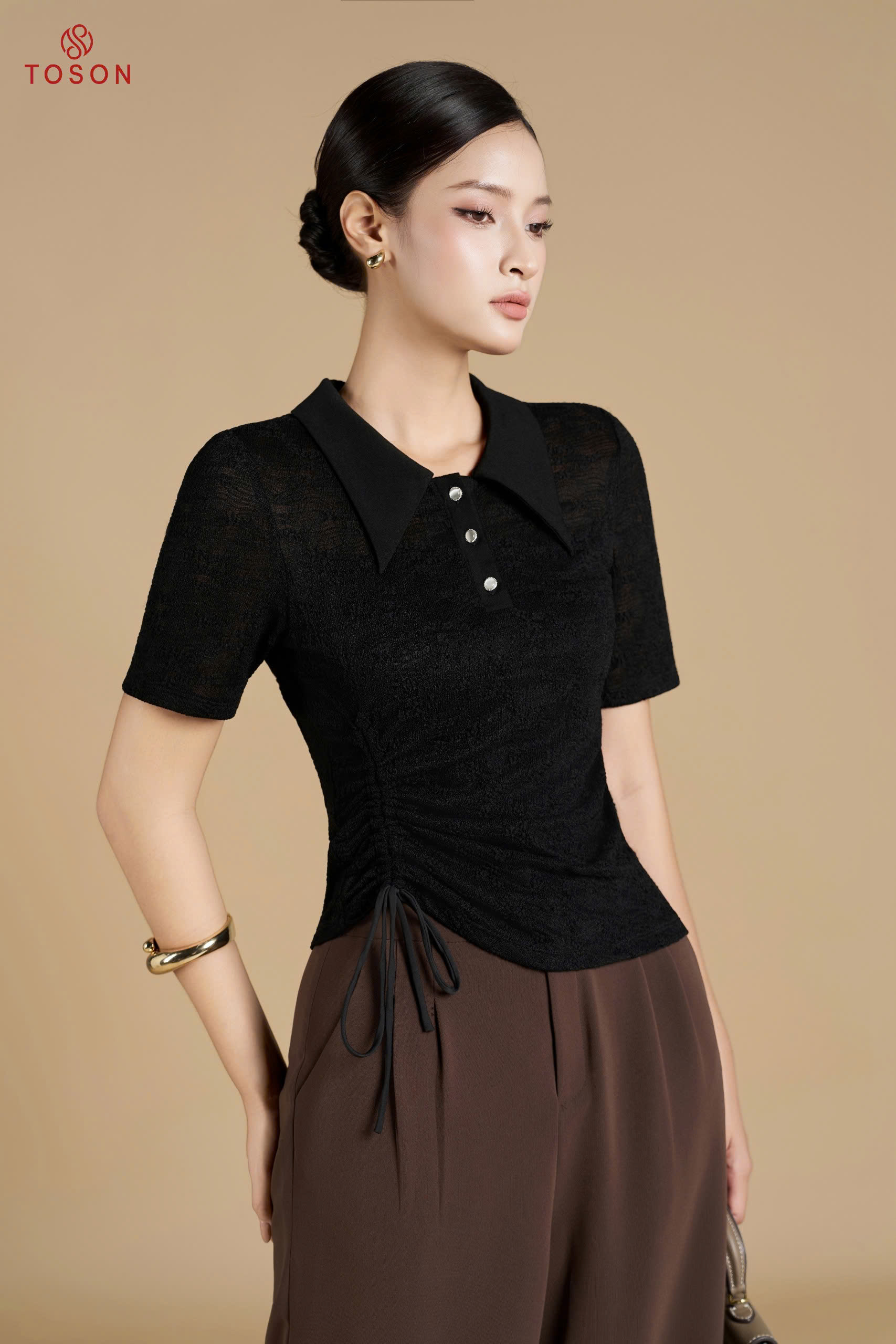 AS103B95 - Áo thun đen vạt lệch đính hoa trang trí