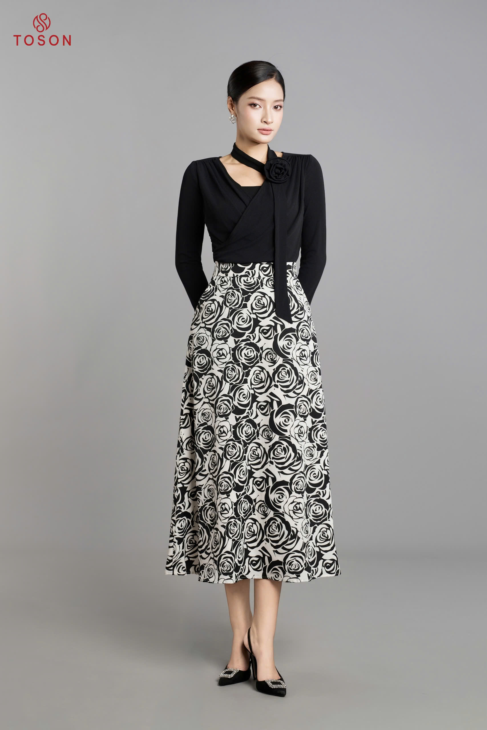 B8306 - Bộ tweet: Vest ngắn đính hoa+ C.Váy dài