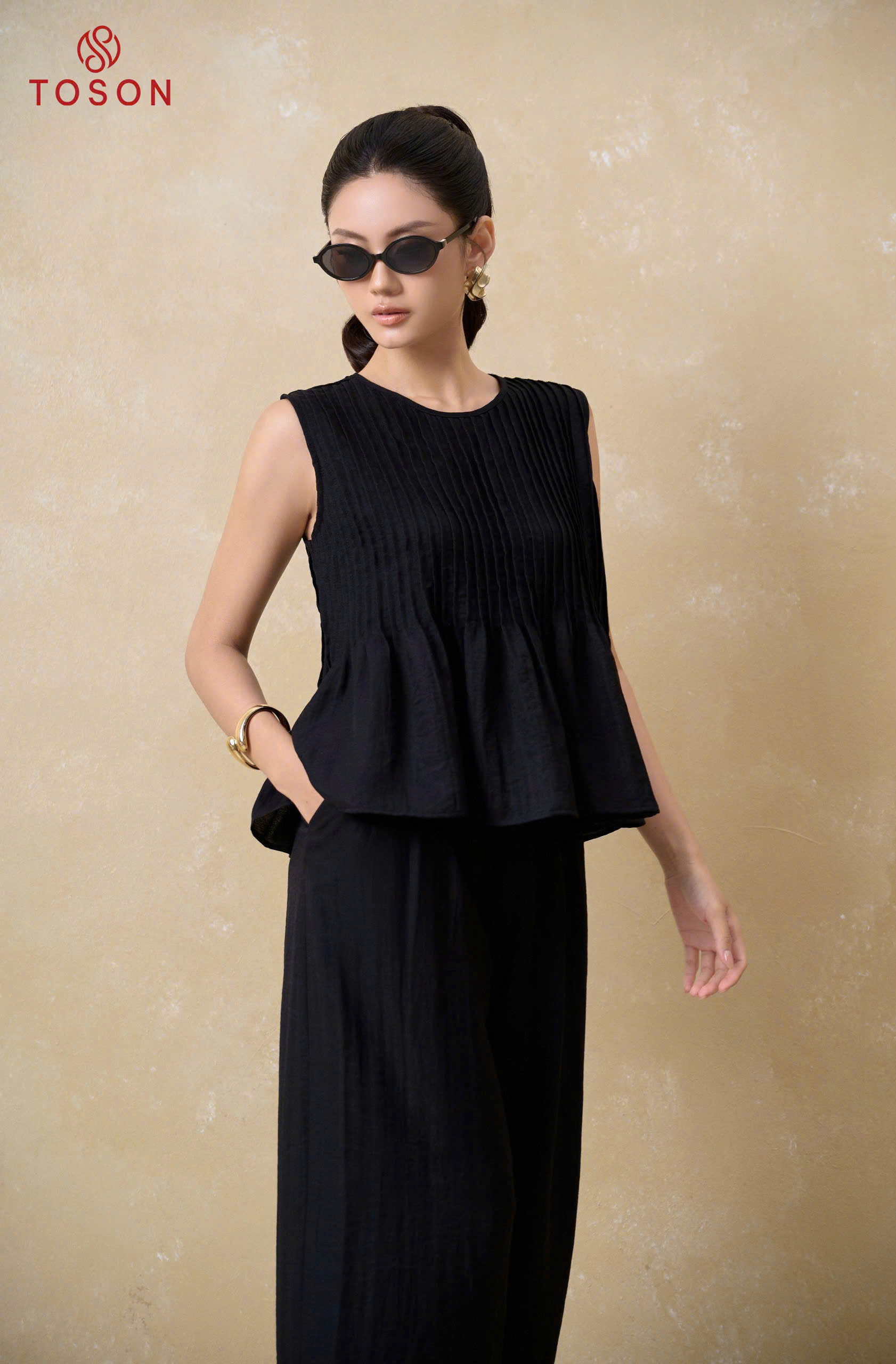 B1230B66 - Bộ đen đũi lụa: Áo sát nách + Q sớ