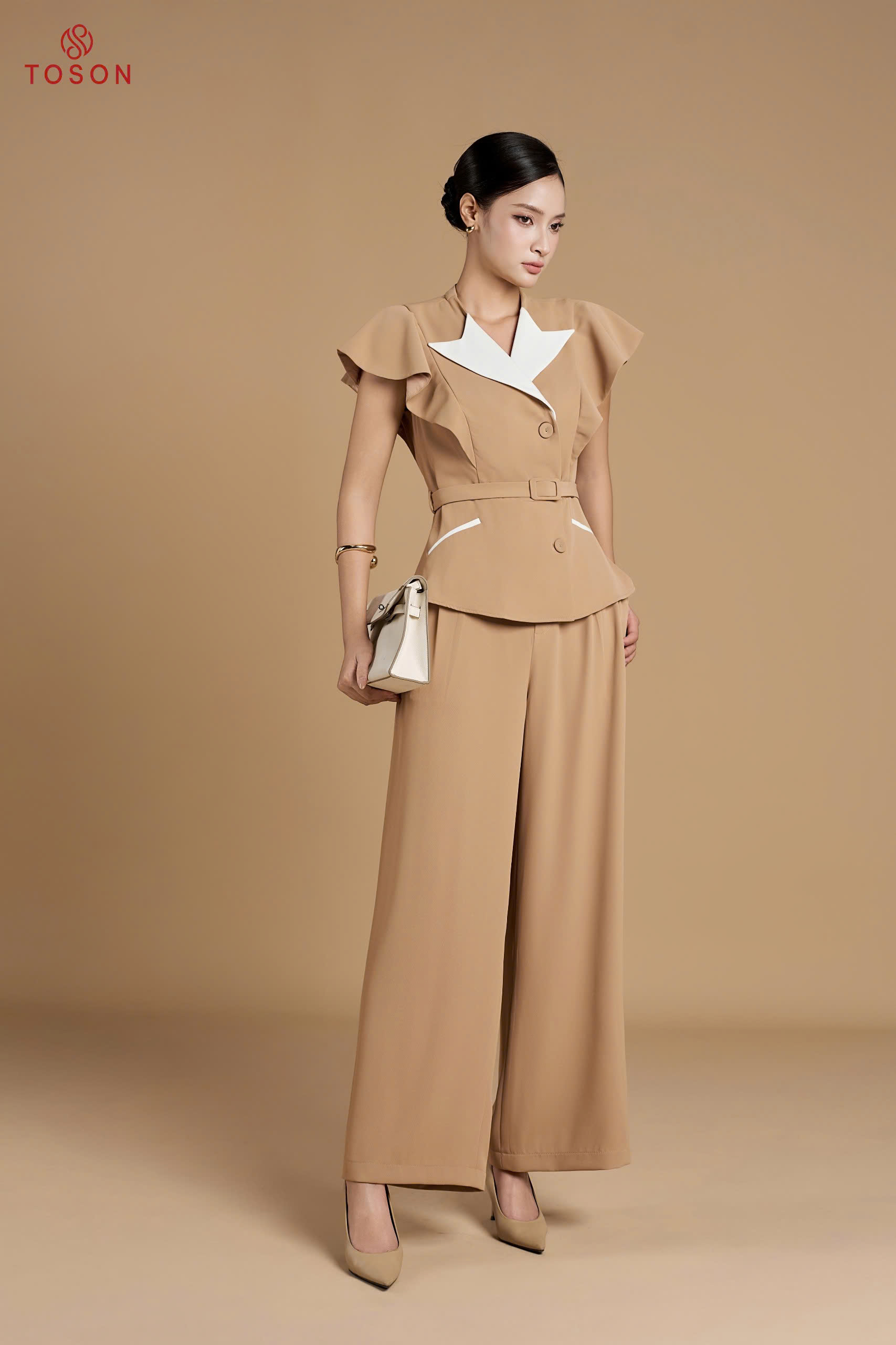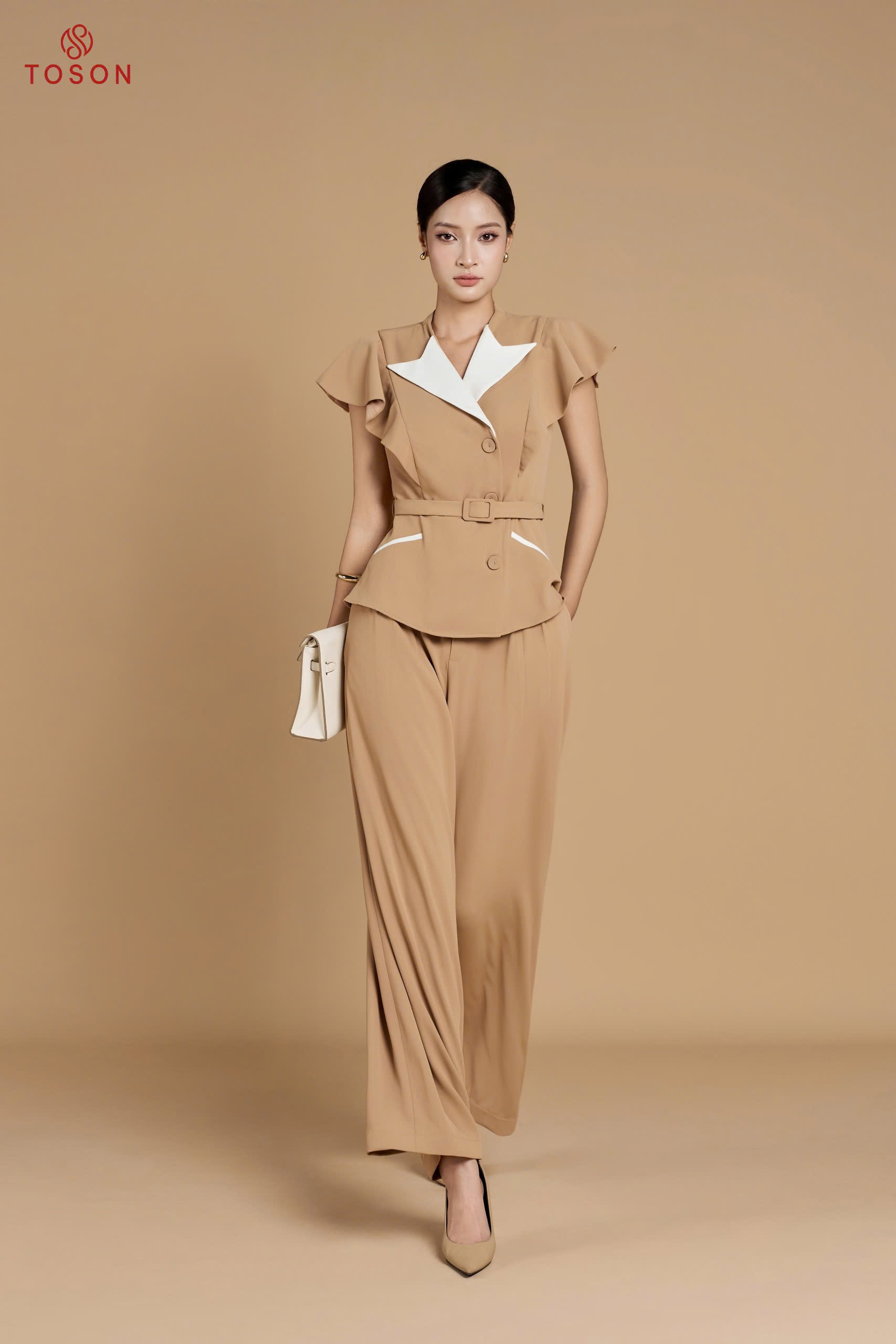 B1393E95 - Bộ kem gấm: Áo peplump tay bồng + C.váy (SXTN)