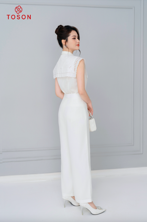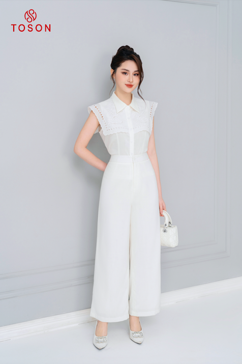 B1265W63 - Set bộ trắng xước nhật: áo cổ thêu bô đê + quần suông Limitted