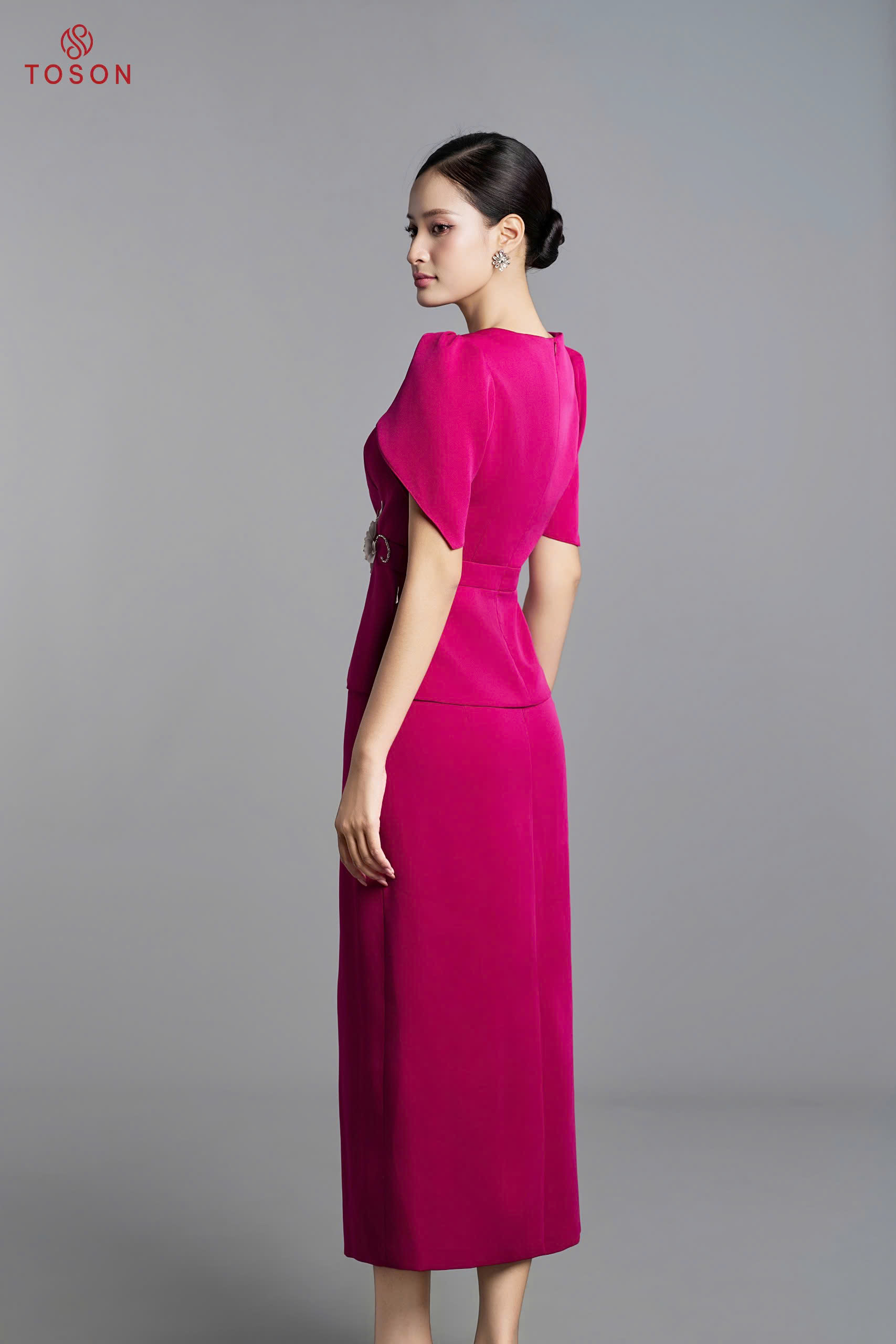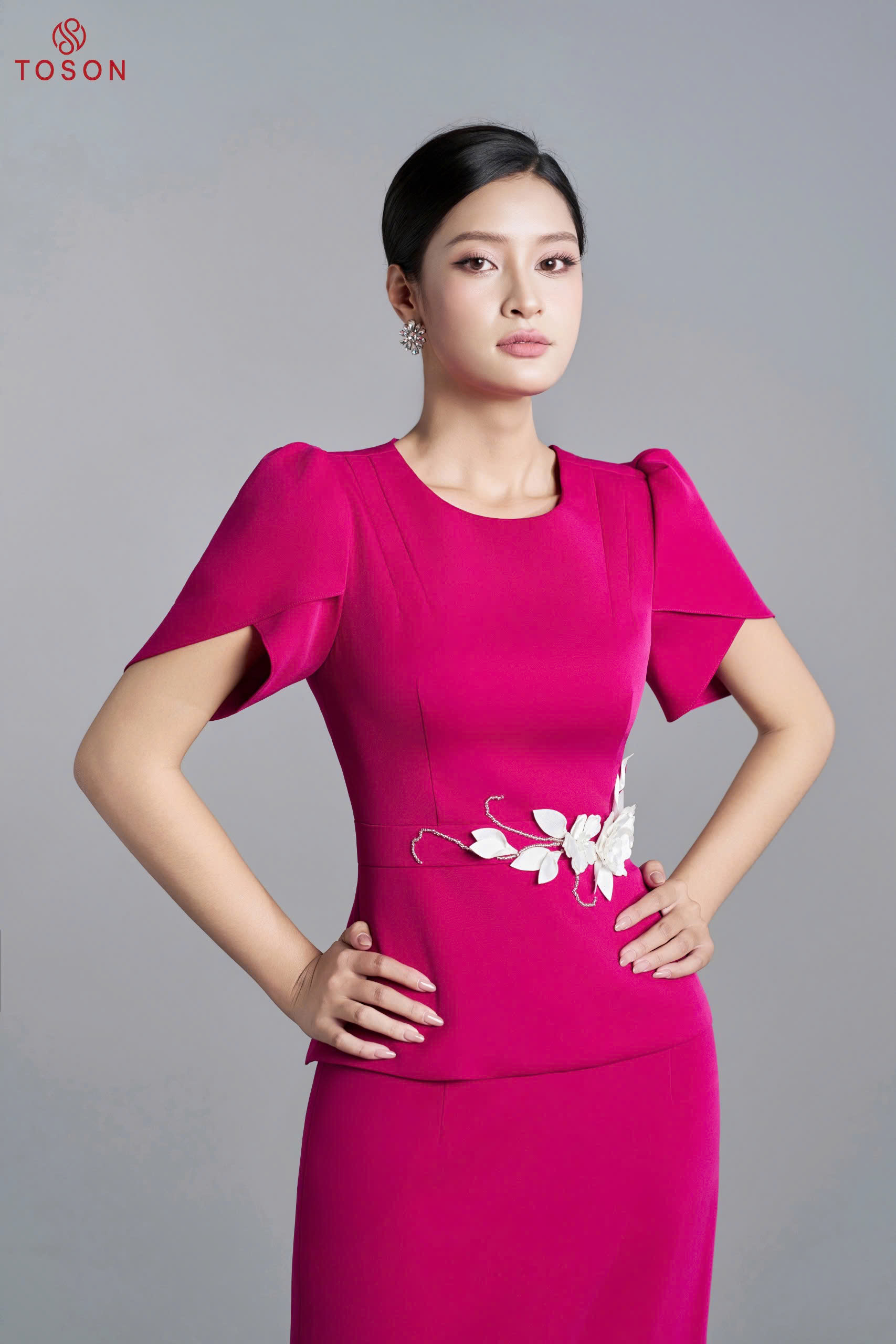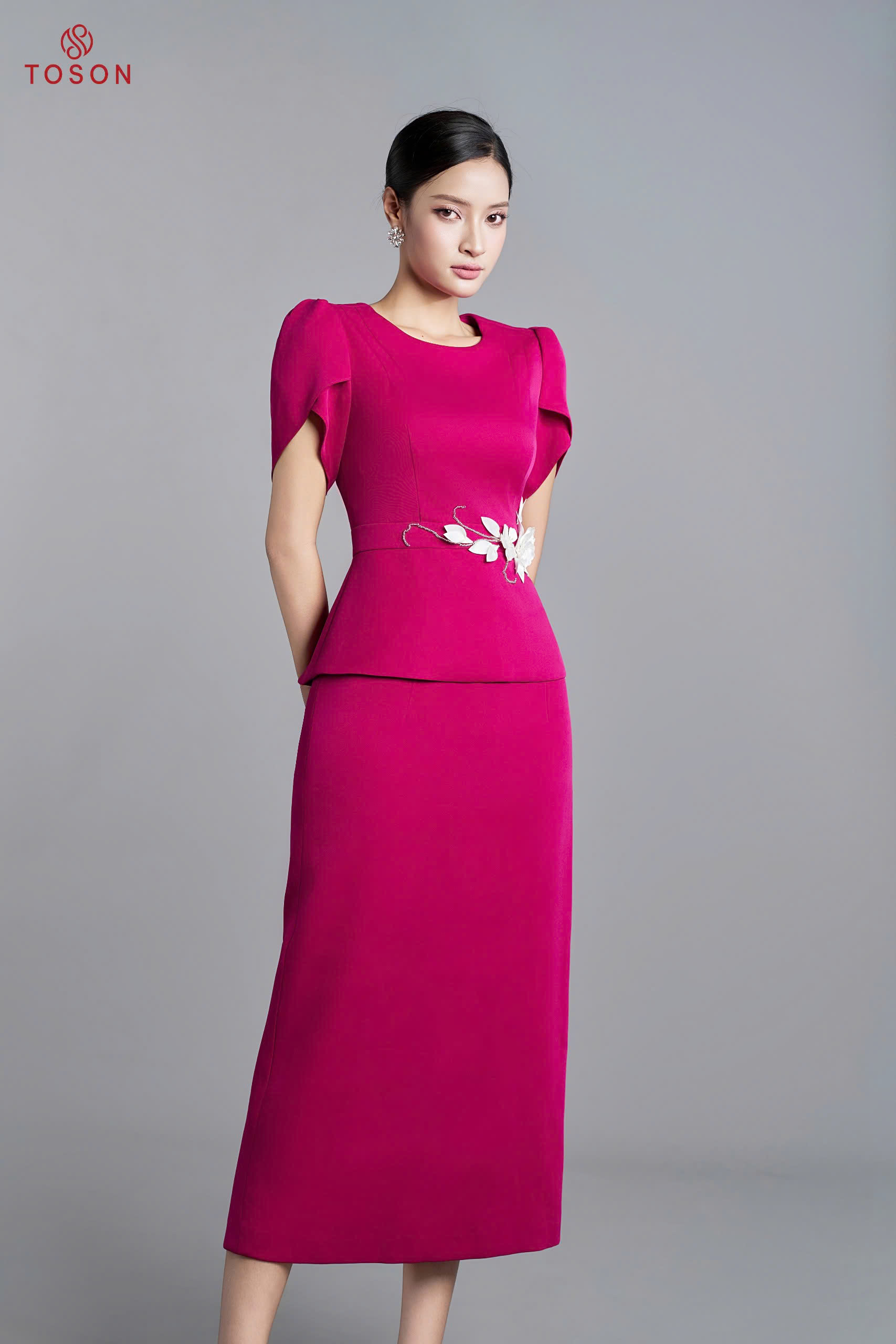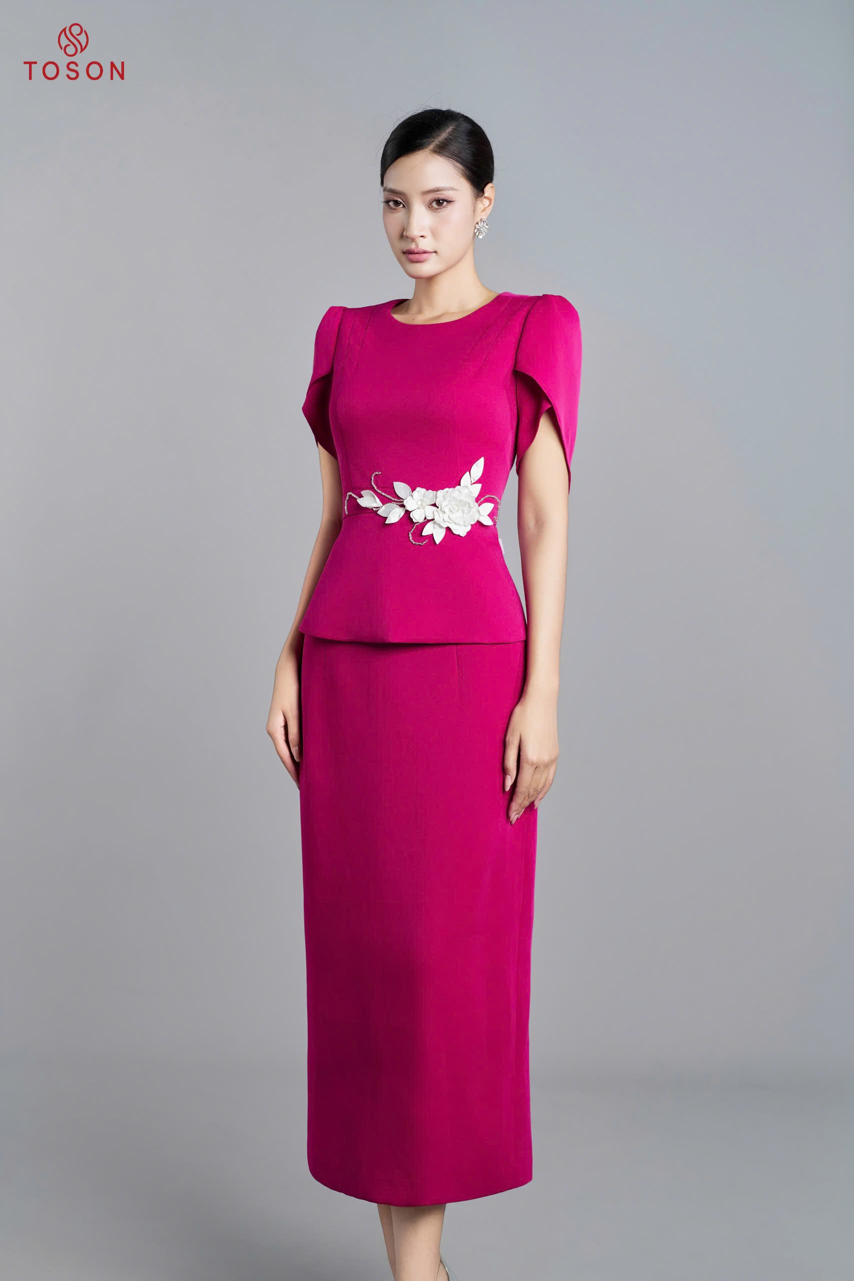 B1391P75 - Set bộ hồng sen: Áo đính hoa eo + C.Váy