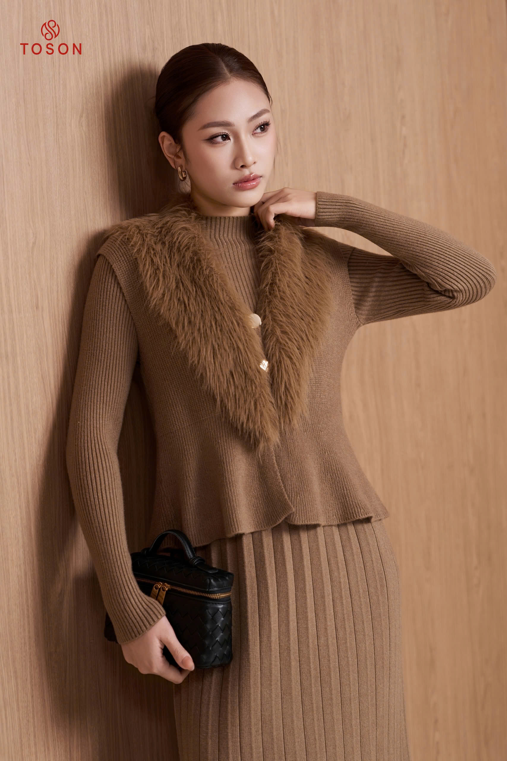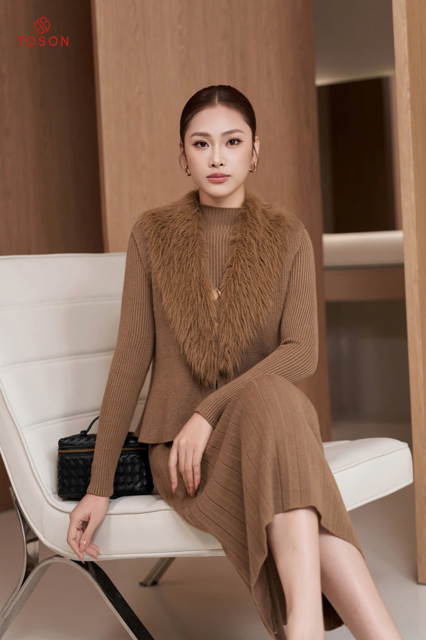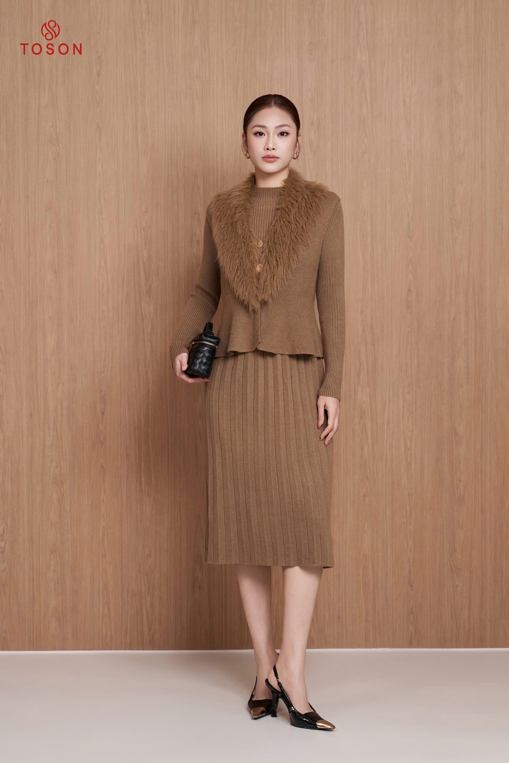 B6704 - Bộ len cổ lông: Gile + Đầm (Freesize)