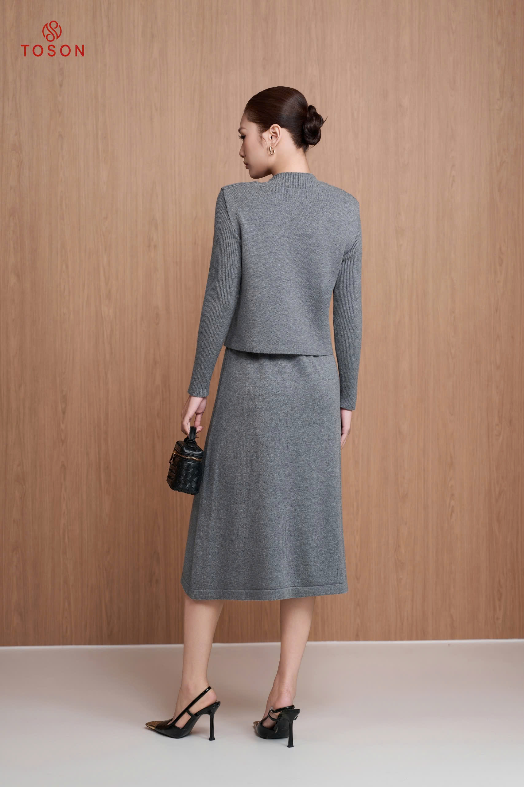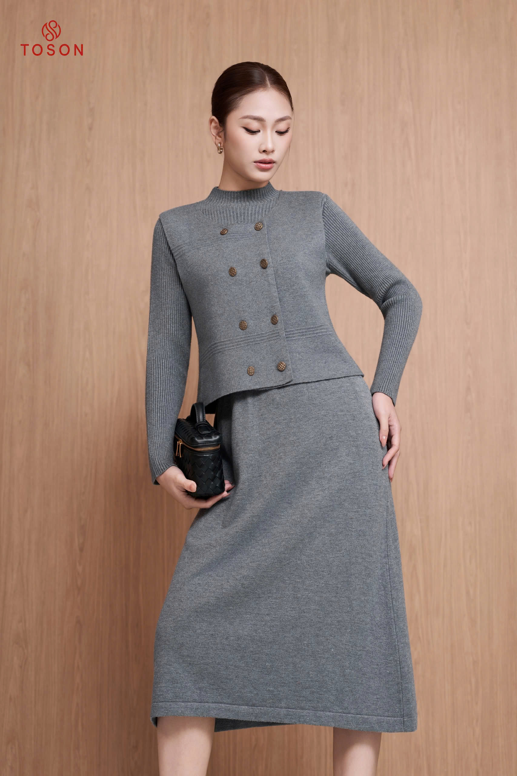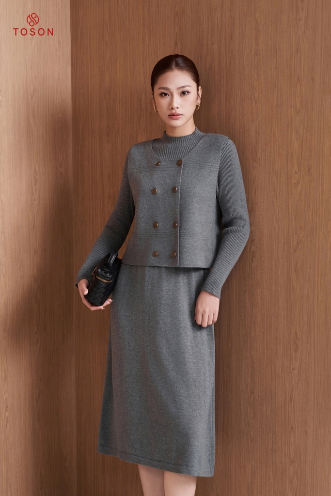 B6705G05 - Bộ len ghi áo Gile cổ tròn + Đầm