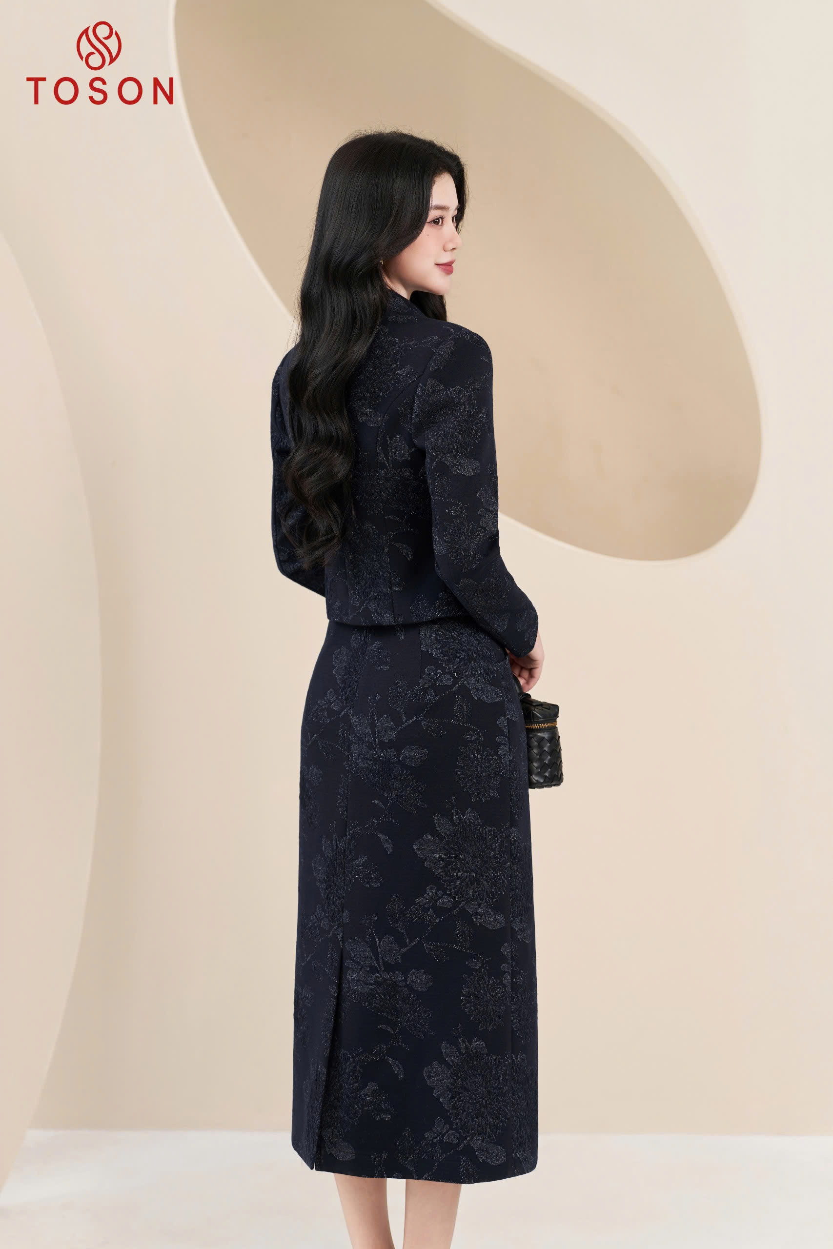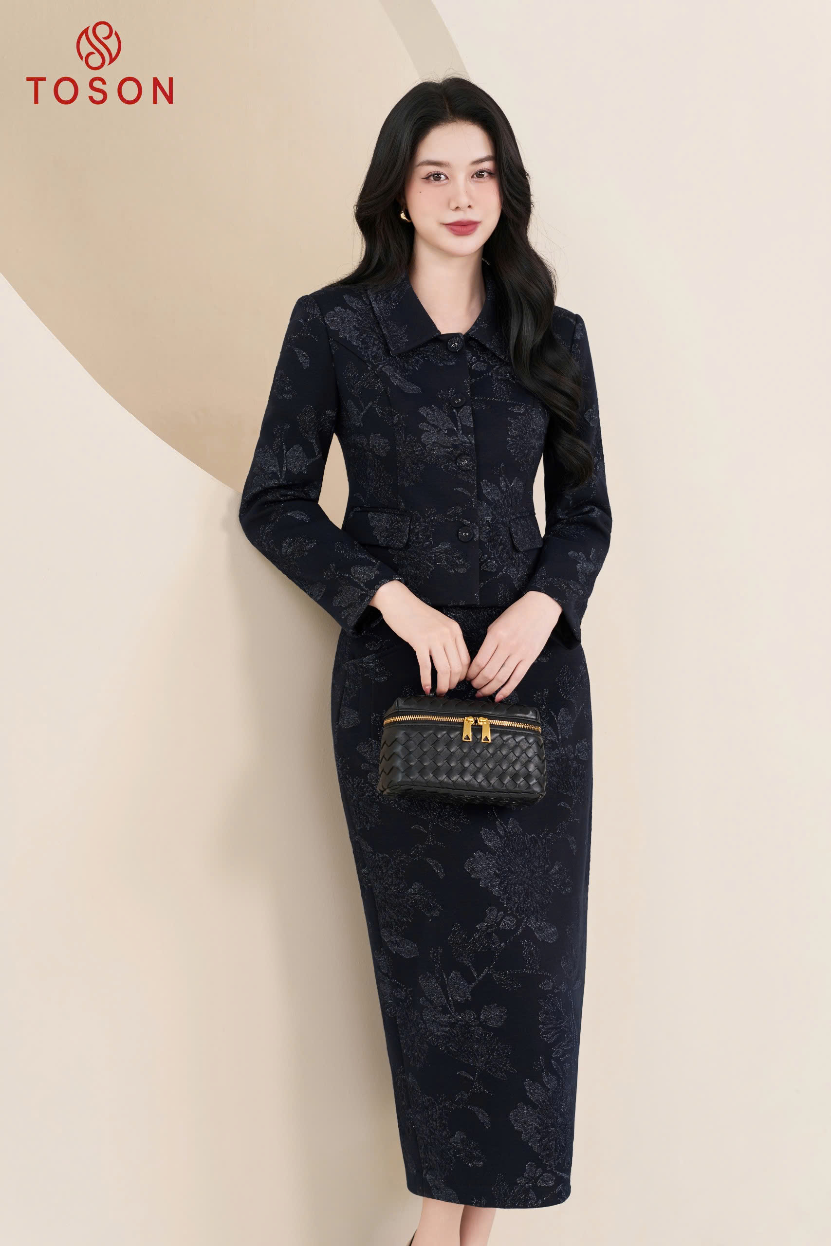 B8306 - Bộ tweet: Vest ngắn đính hoa+ C.Váy dài