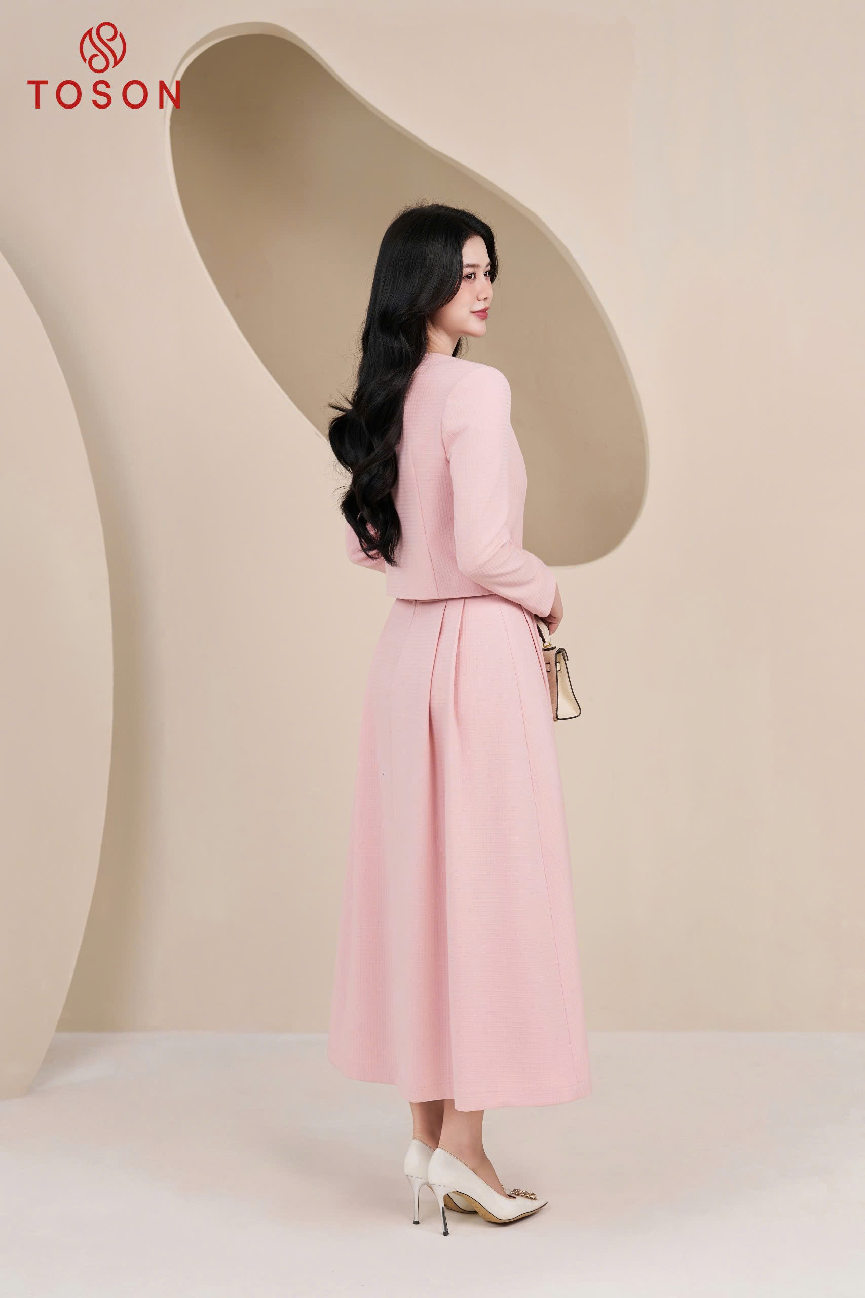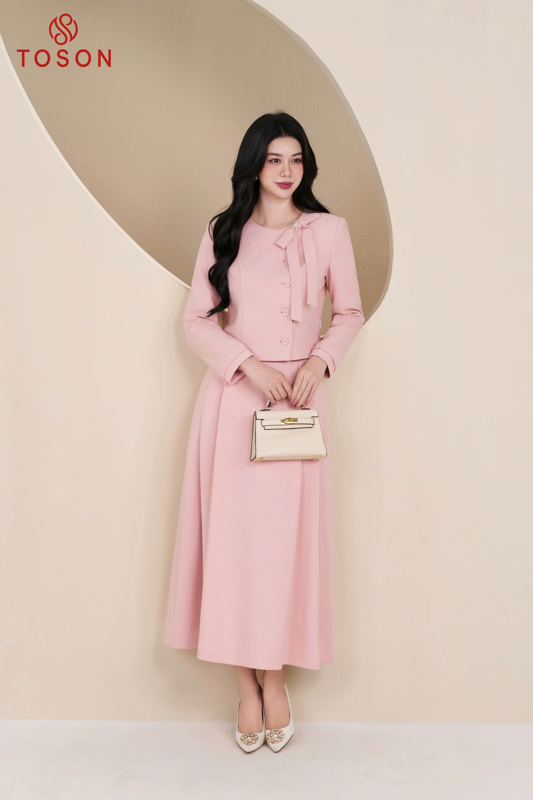 B8306 - Bộ tweet: Vest ngắn đính hoa+ C.Váy dài