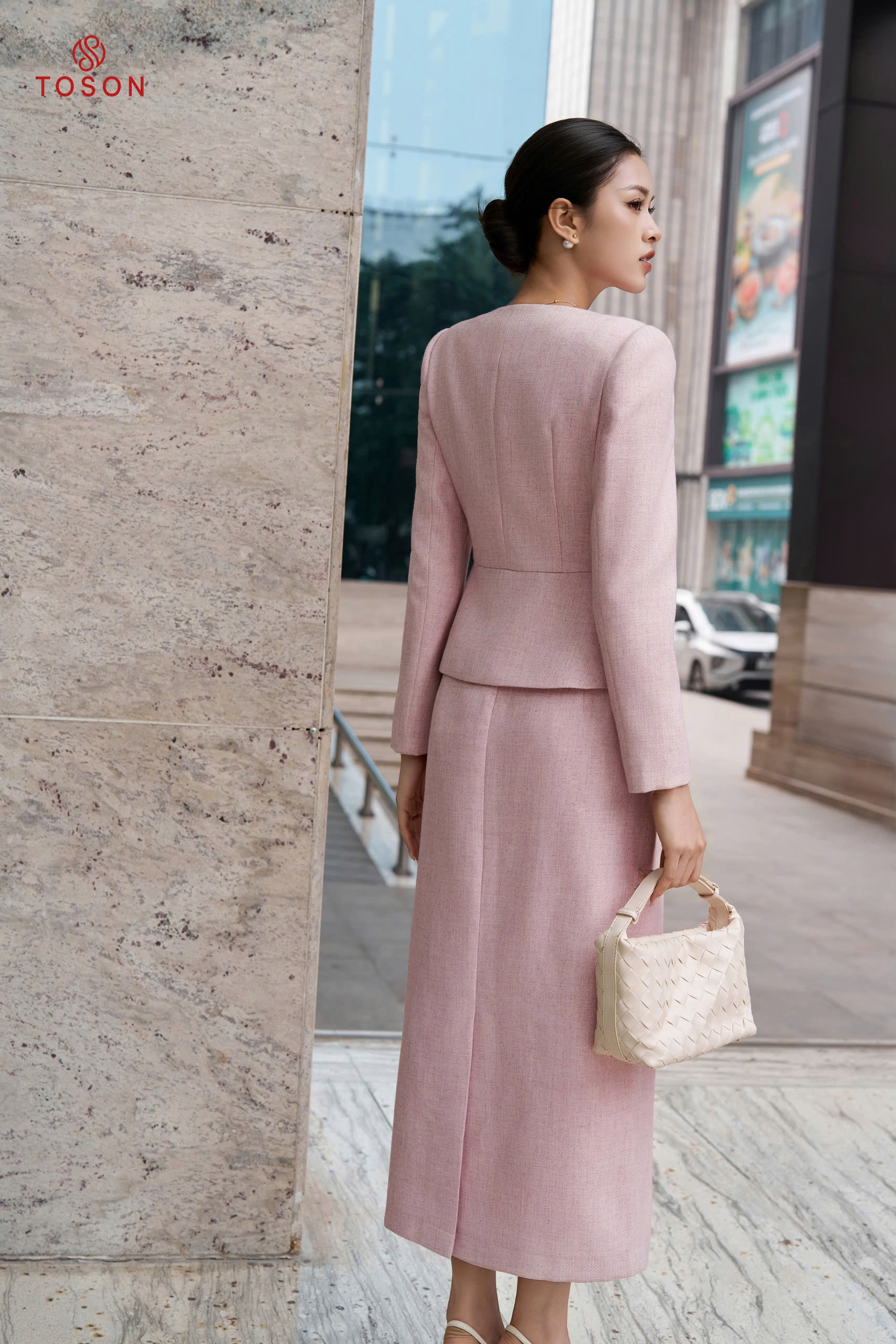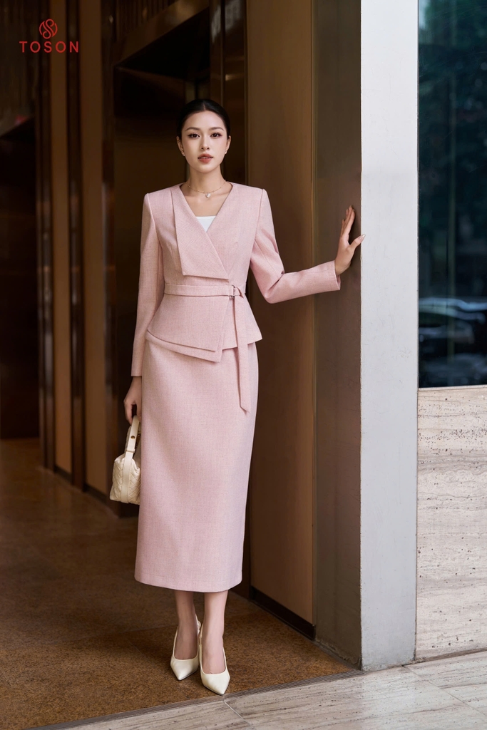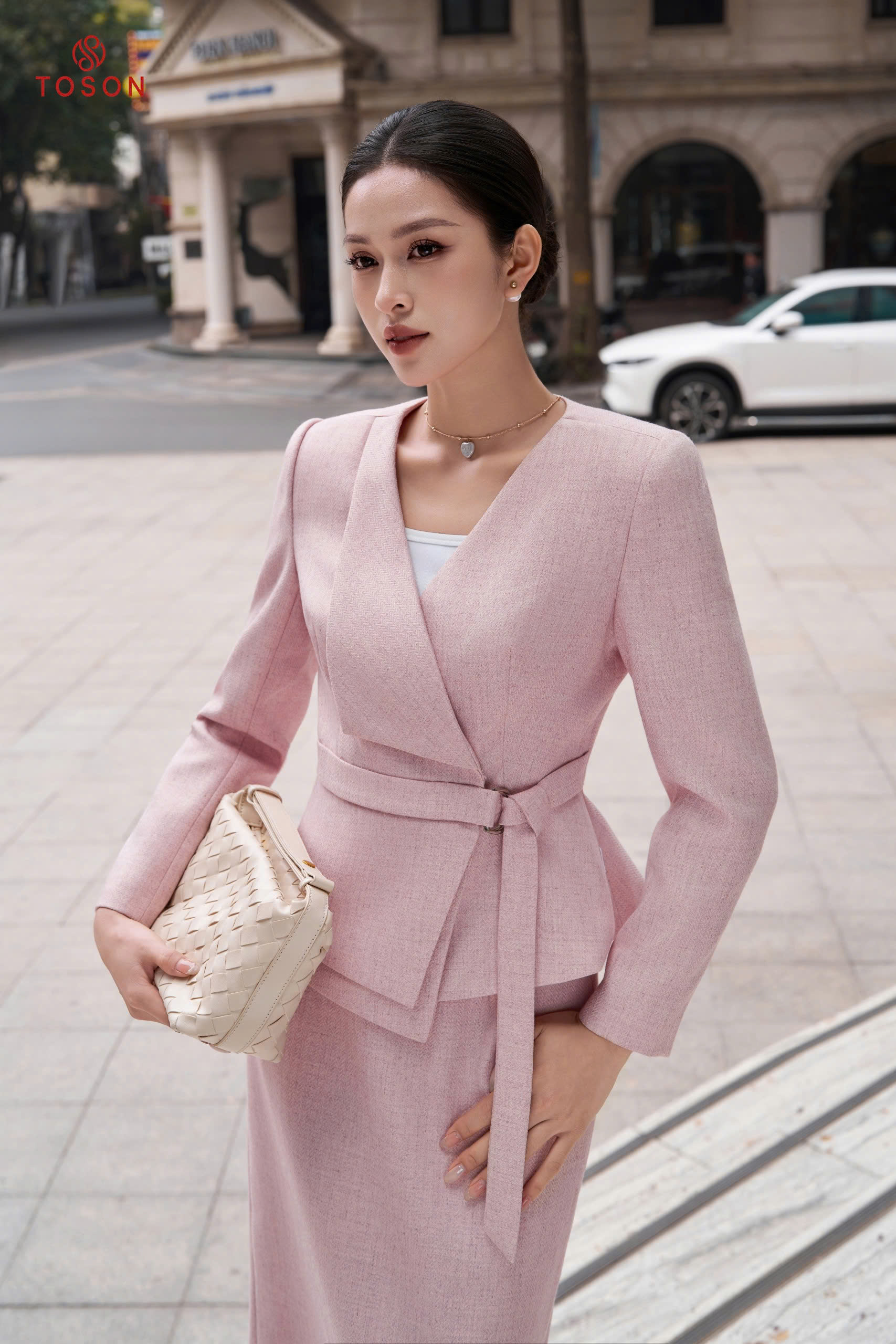 B8361P65 - Bộ text hồng đỗ, áo vest thắt đai + CV