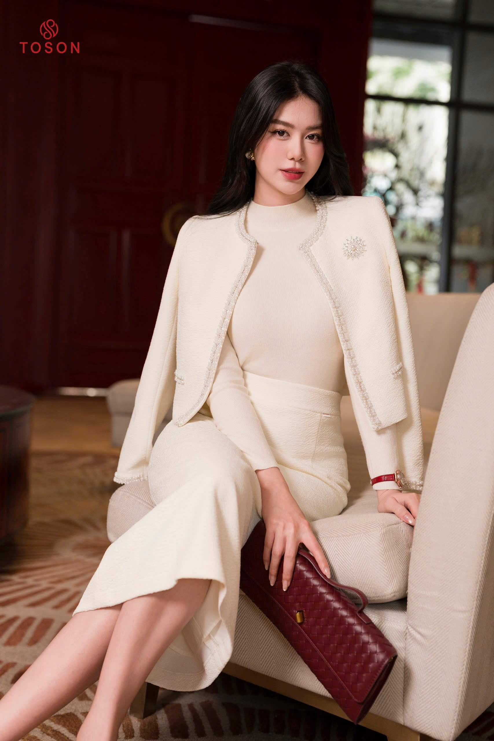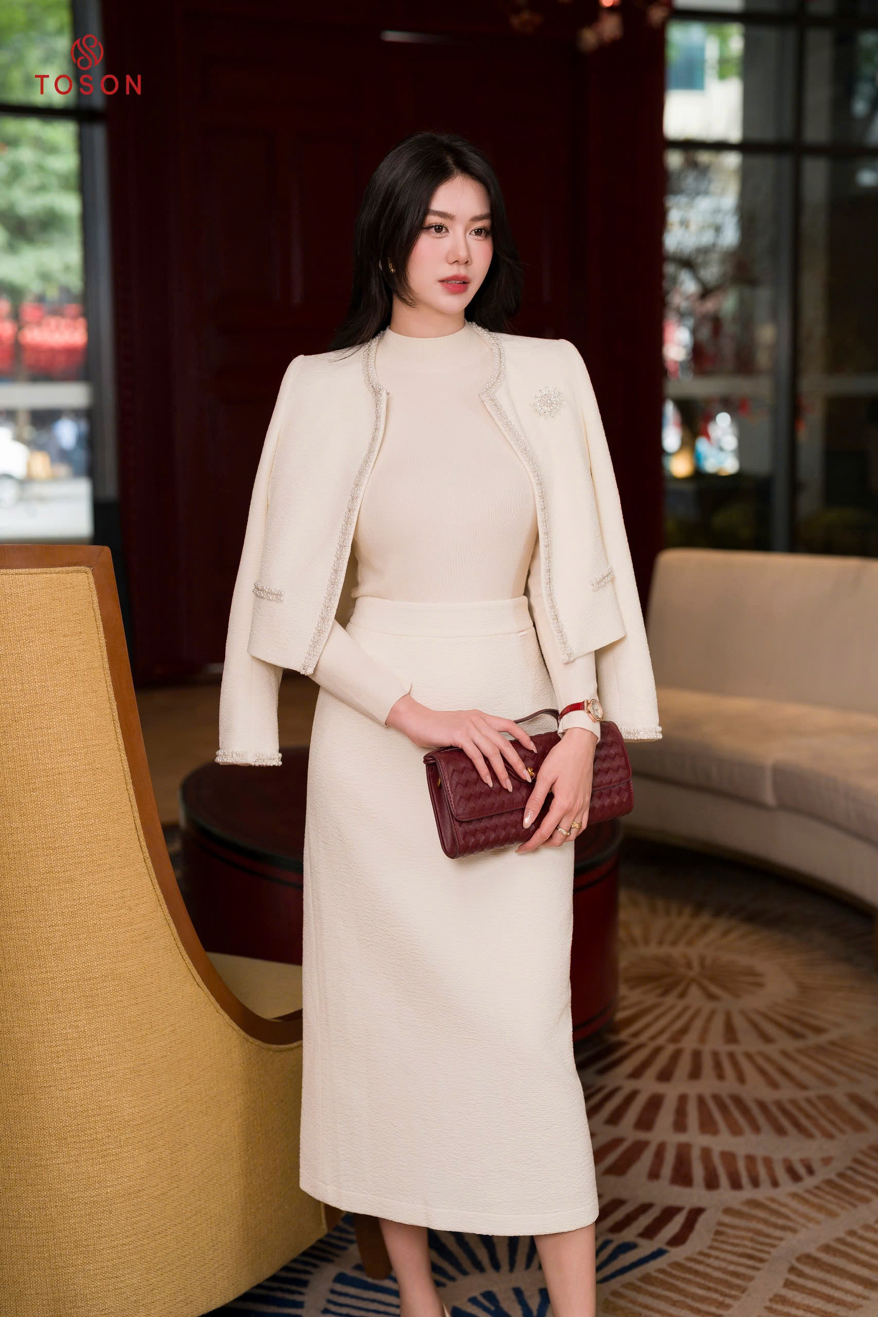 B8374E65 - Bộ u mì xốp kem: Vest ngắn + C.váy