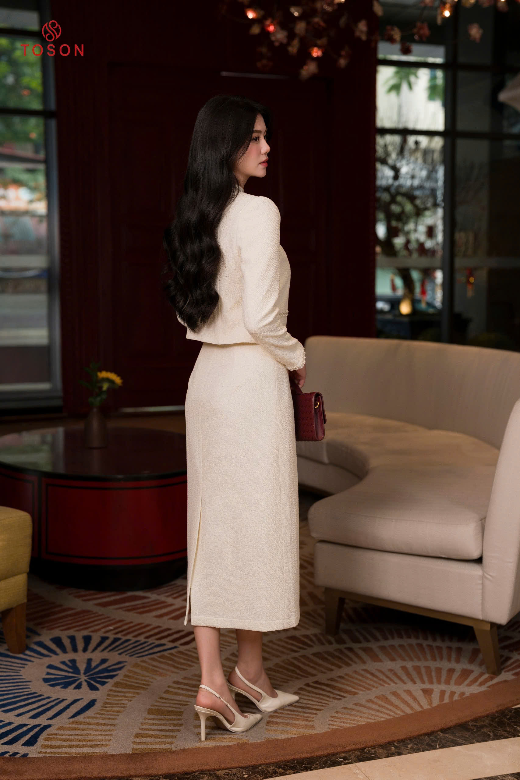 B1393 - Bộ gấm: Áo peplump tay bồng + C.váy (SXTN)