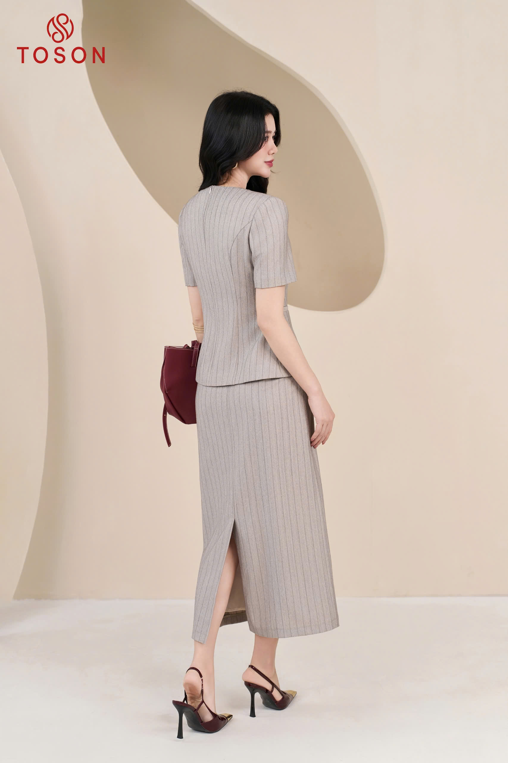 B8382 - Bộ text kẻ: Vest tay cộc + C.Váy
