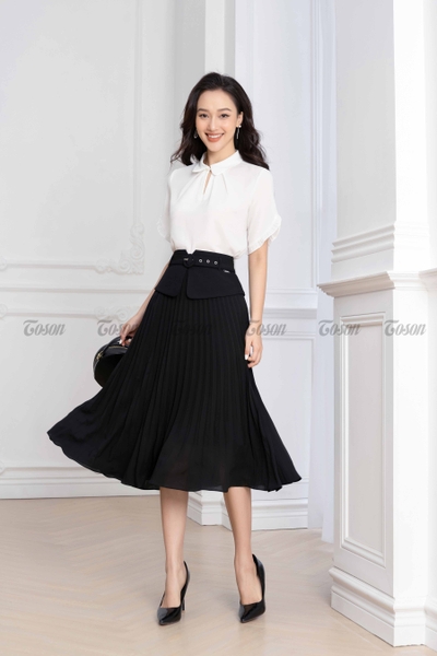 Phối chân váy với áo sơ mi, hoặc áo thun trắng
