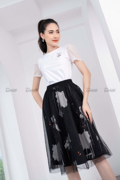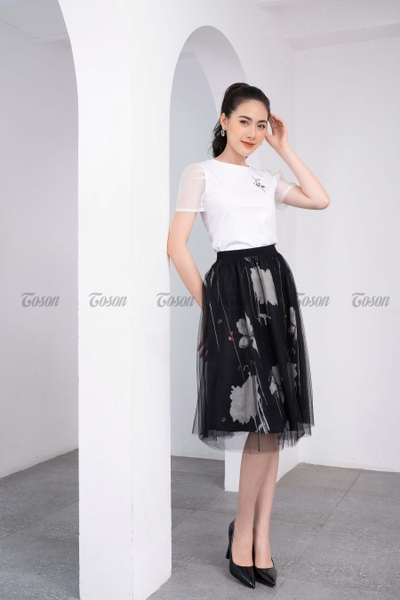 Những set đồ phối chân váy họa tiết không cầu kì mà diện lên ai cũng xinh hết thảy. Để tôn lên dáng vẻ tự nhiên, duyên dáng sẵn có của mình, bạn có thể tham khảo cách phối đồ chuẩn từ Toson như sau:
