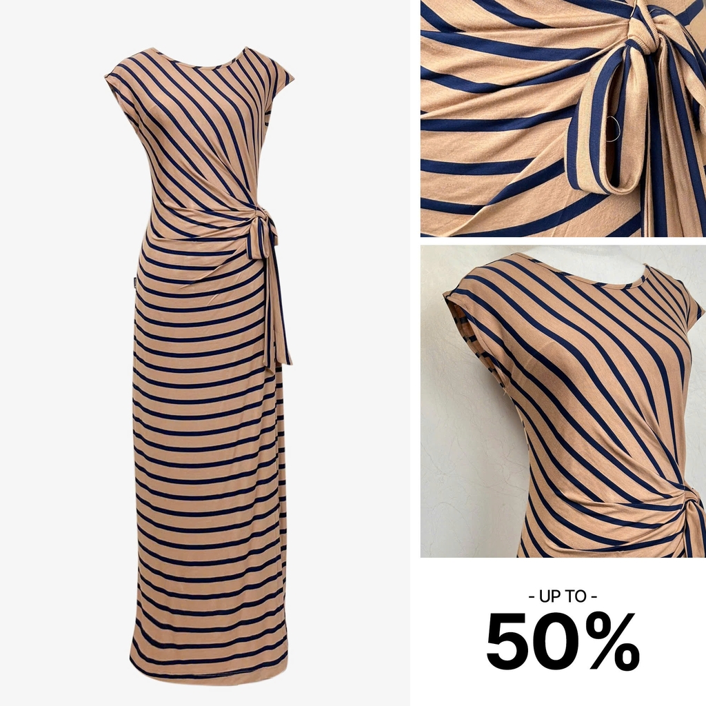 DP001K35 - Đầm cotton kẻ nâu 2 lớp xếp ly eo