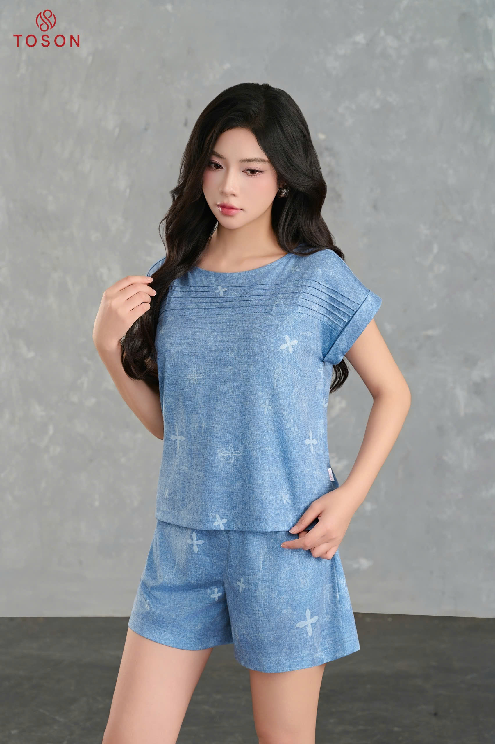 AP117 - Áo cotton vàng phối trắng in hoa hồng