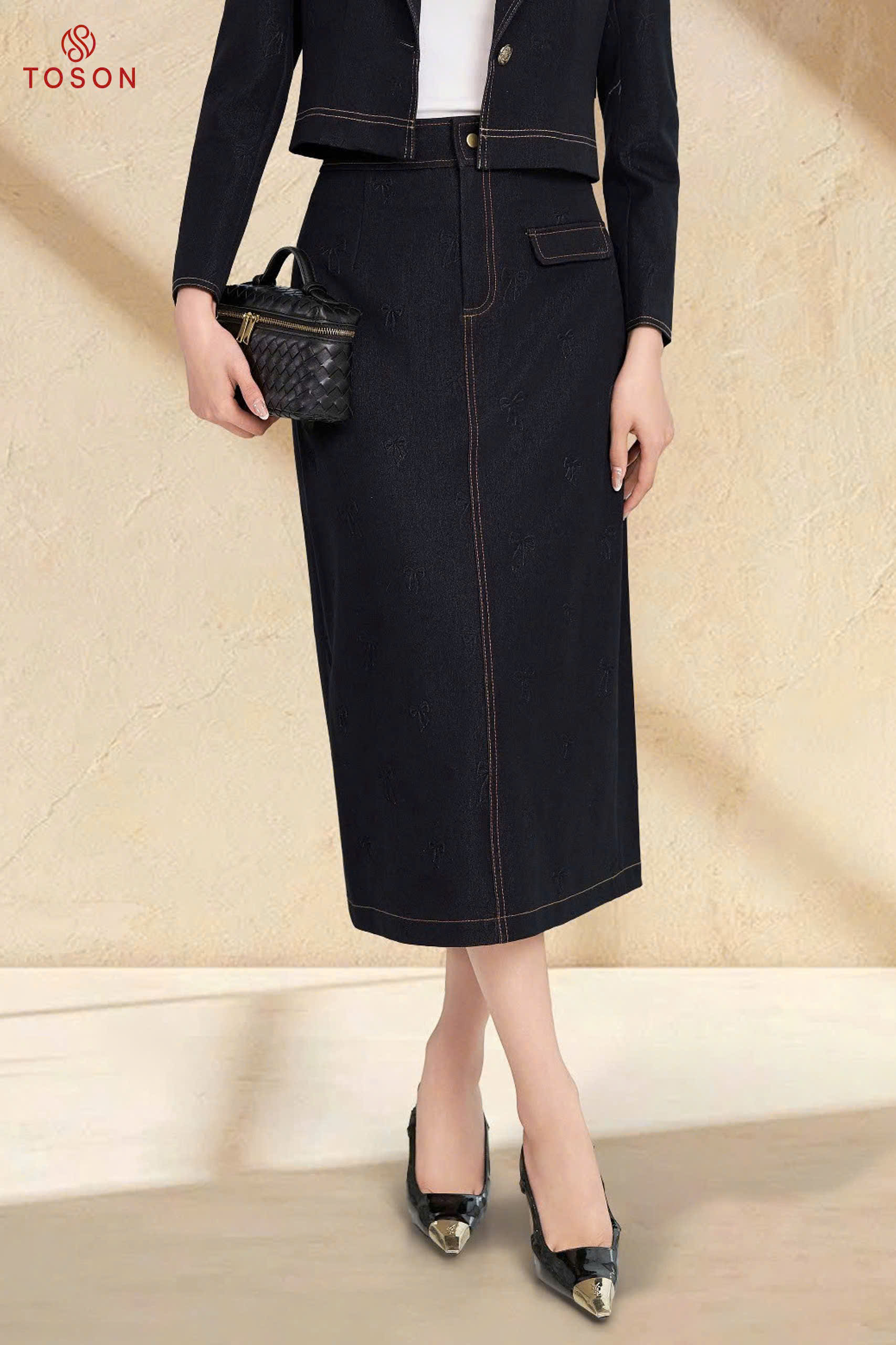 JCD02X65 - Chân váy bò xanh diễu chỉ trắng
